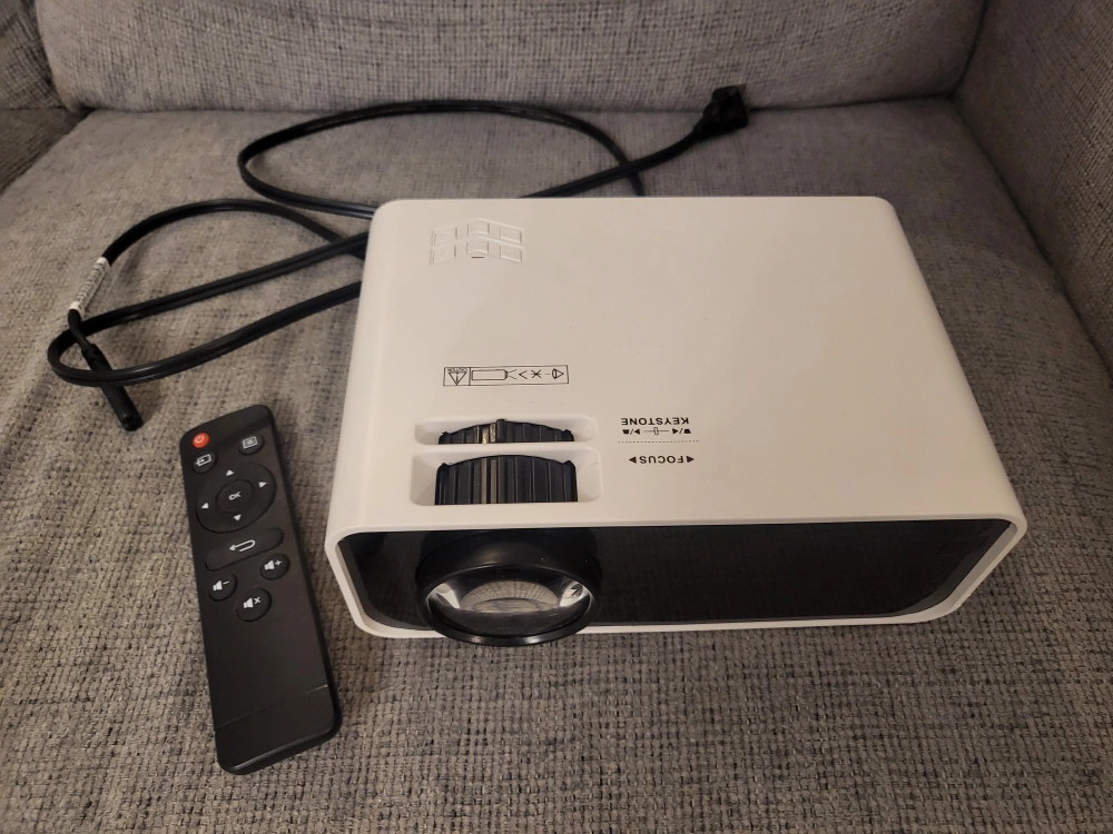 Includes remote, power cord. It has multiple inputs including VGA, HDMI, USB, AV. working well. Chinese language version