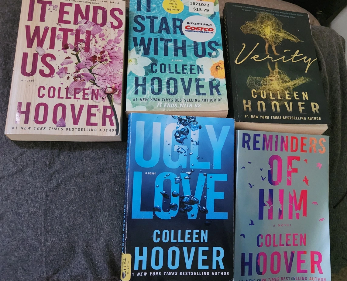 A set of 5 Colleen Hoover books: It Ends With Us, it Starts With Us, Verity, Ugly Love, Reminders of Him.
