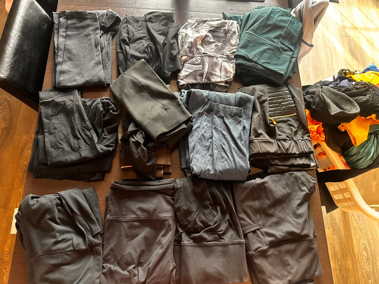A lot of different brands and styles of leggings. All sizes and colours. Some are brand new and some are gently used. All are in good condition.