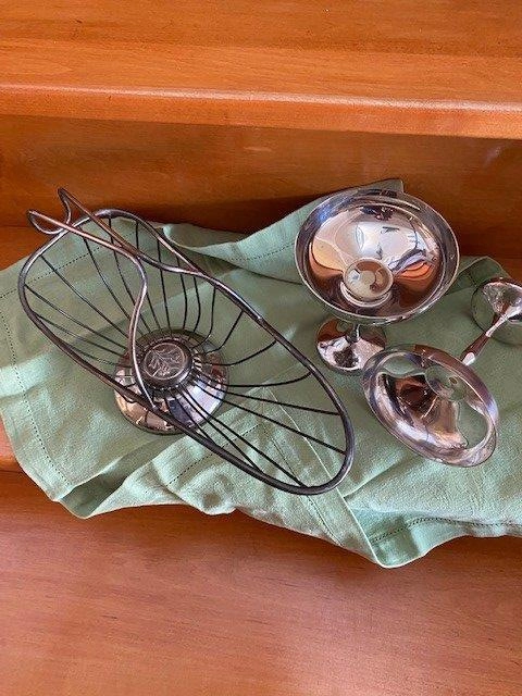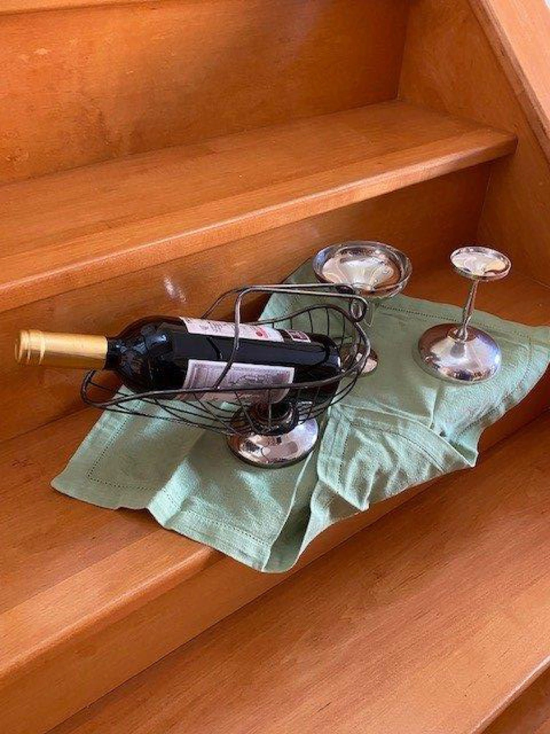 Wine goblets with wine holder basket- silver plated