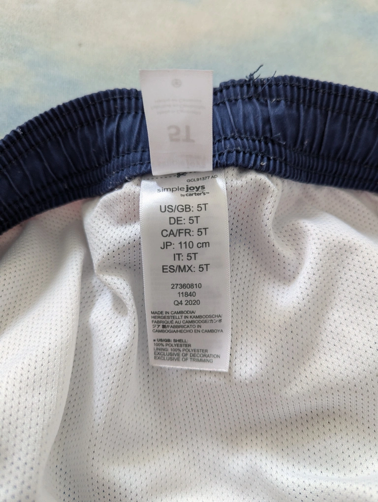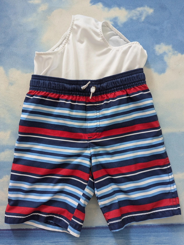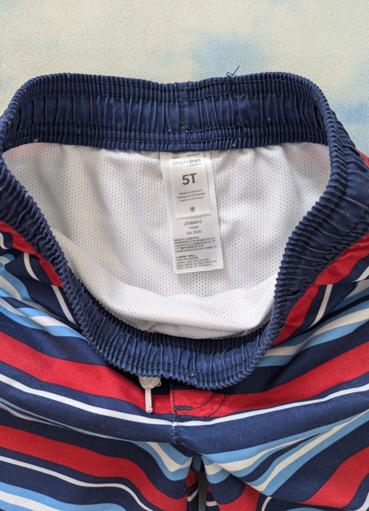 5T Simple Joys Swimming trunks in stripes, good used condition, fit average 5-6 years old boys.
