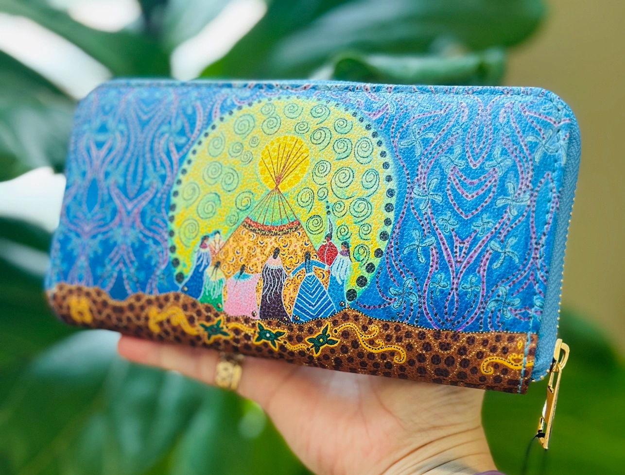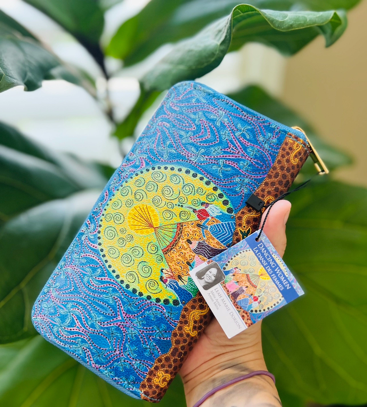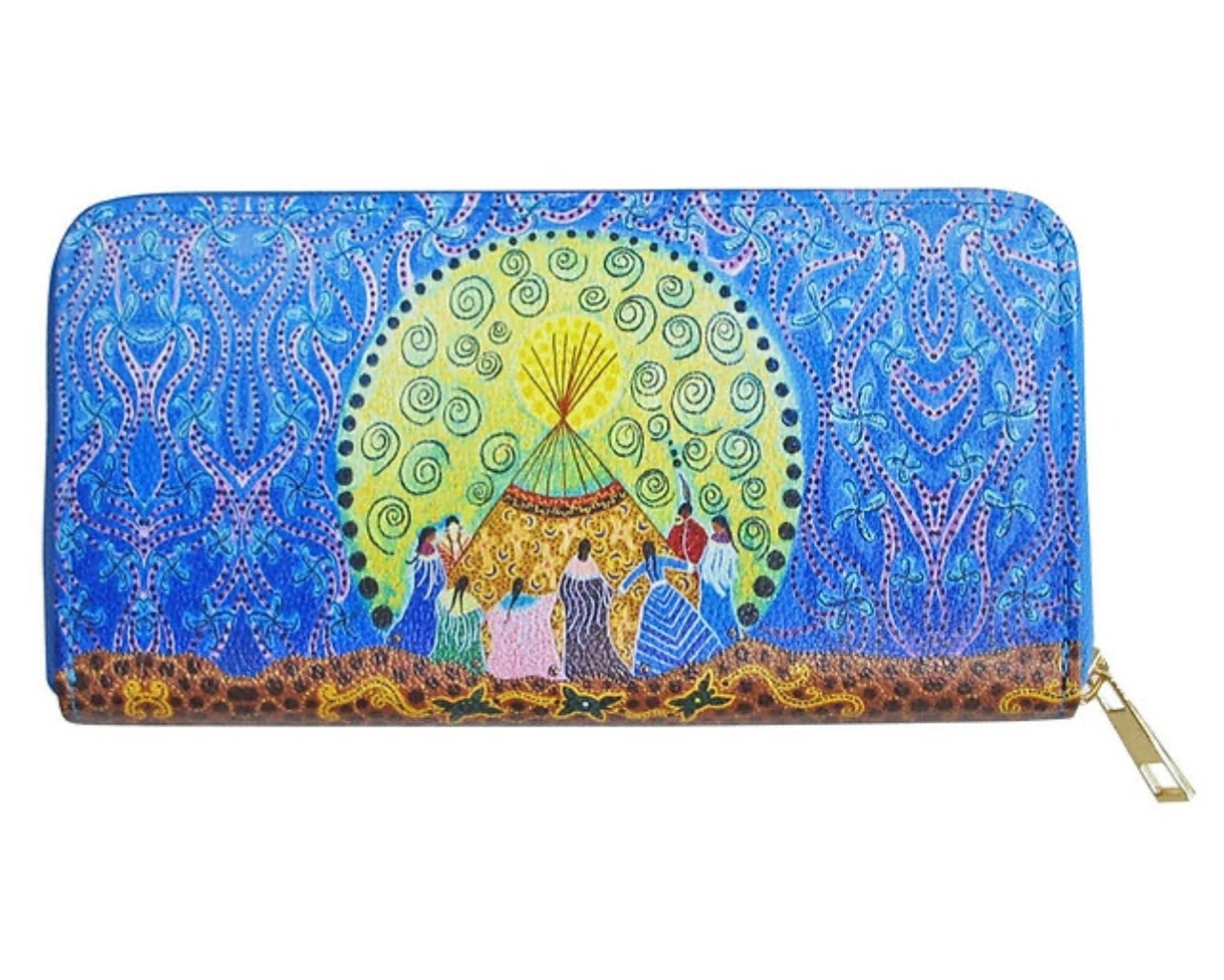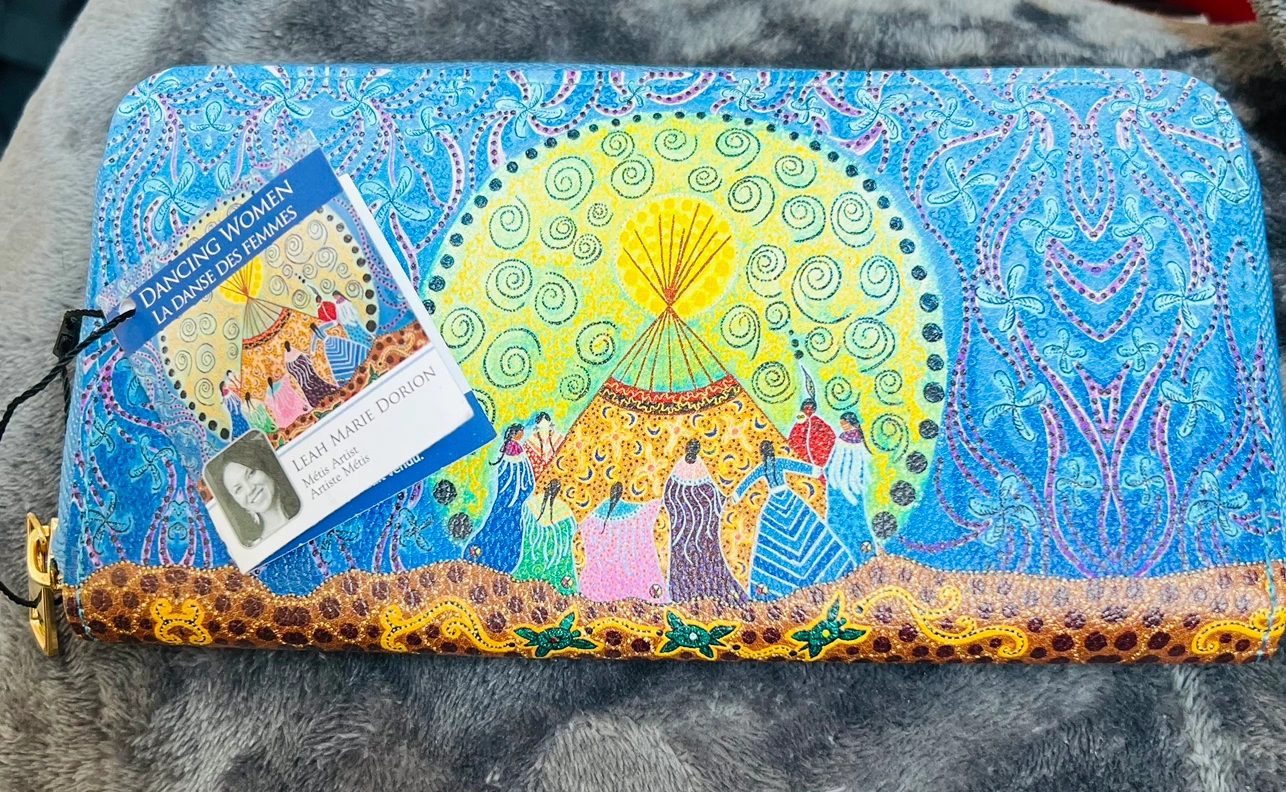 BNWT Leah Dorion Dancing Women Zip-Around Wallet Designed by Canadian Métis Artist Leah Dorion. Dancing Women celebrates the inter-generational relationships among women and girls and how important it is to work together as a community of women. Wallets are 12.5cm x 21cm; it is zipper-closed, with 8 card slots, 5 compartments and 1 zipped pocket inside. Currently Retails for 42.50 + shipping