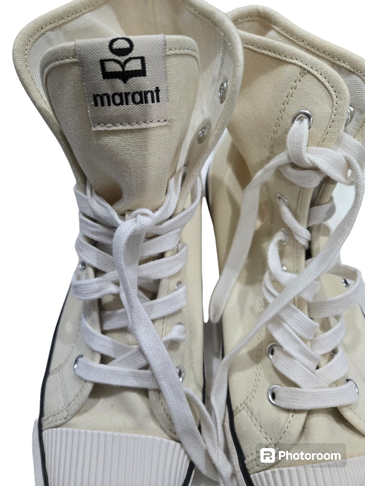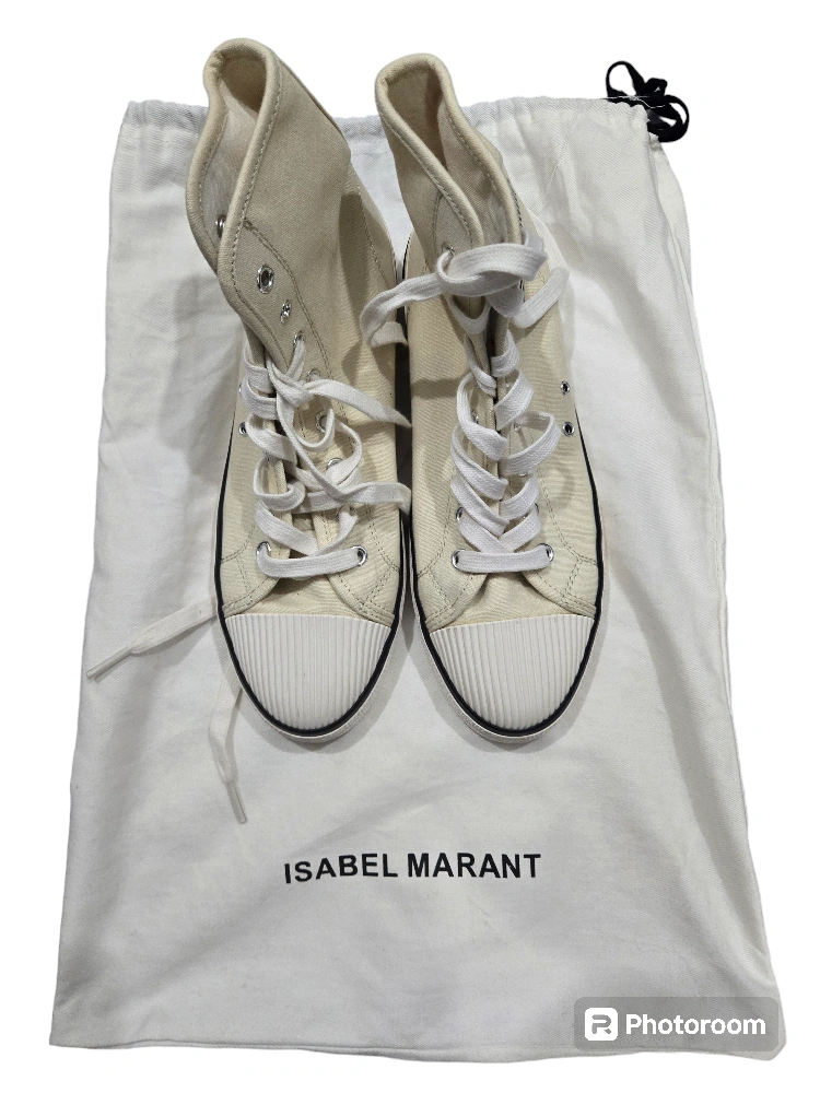 1000+Designer Isabel Marant Bankeen Canvas High-Top Sneakers Size: US 8 Condition: 9/10 Aside from a few minor soiled spots on the rubber section, the shoes are in excellent condition. Material: 100% cotton with a rubber outsole Isabel Marant's cream Benkeen trainers are printed with a graphic black logo on the side which conveys a retro sporty mood. They're crafted from canvas to a high-top shape with silver eyelets and defined black foxing tape above the white rubber sole. Wear them with loose sweaters and jeans on laid-back days. The sneakers come with a dust bag. I am not a professional seller. I do not own a store or website. Seriously, stop sending false reports. **Pick-up or Meet-up**: - Finch (Primary location for collection) - Downtown (Reserved for a designated collection day) A bundle sale discount is available for 3 or more items.