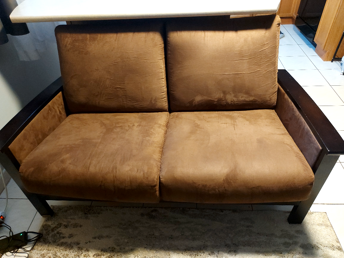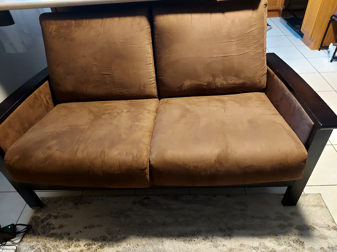 1 / 51 / 5Buy & SellBrown Love Seat and SofaBrown Love Seat and Sofa$100This love seat has a brown suede fabric and dark brown wooden frame. It comes with 4 cushions.ConditionGoodWHERE TO MEETBy the mailboxes on Delmar DriveView MapSELLERAmoyMohawk252 reviews1 chats·0 favorites·83 viewsSEND CHAT TO SELLERHi Amoy! I’m interested in your listing.Hi Amoy! I’m interested in your listing.Get the Karrot app to chatSign In to chat