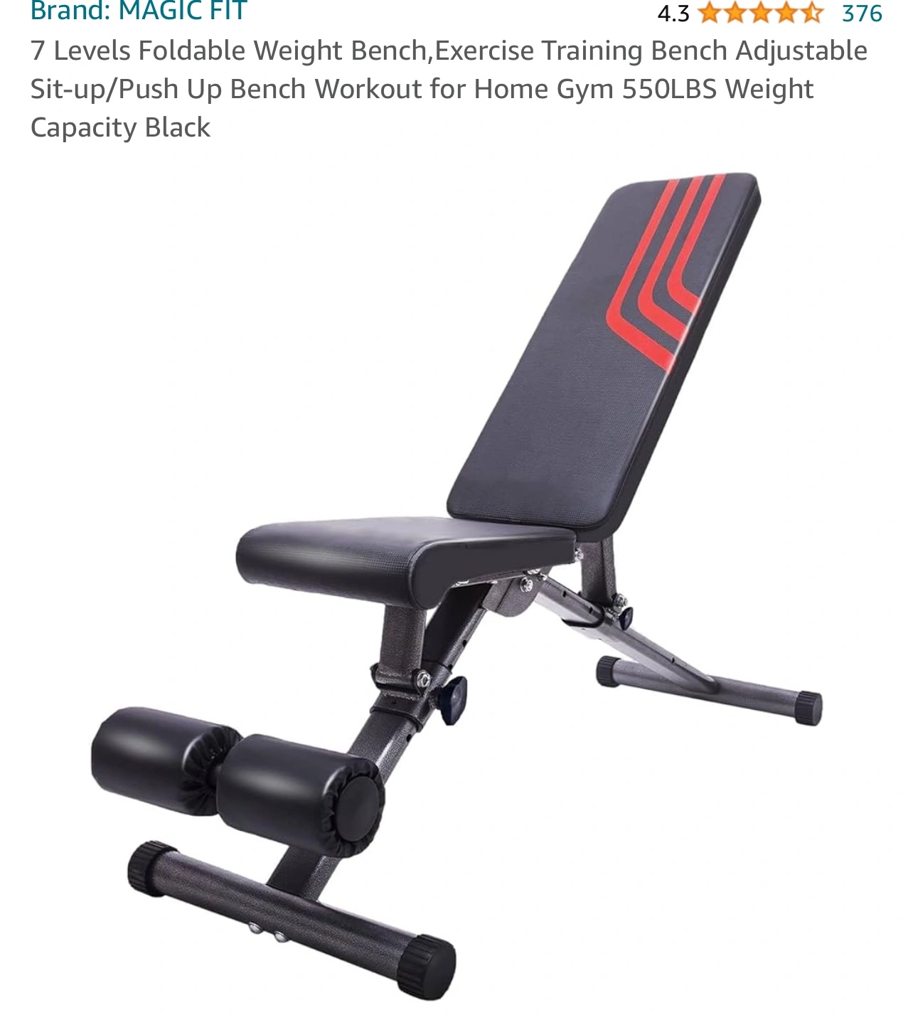 7 Levels Foldable Weight Bench,Exercise Training Bench Adjustable Sit-up/Push Up Bench Workout for Home Gym 550LBS Weight Capacity Black