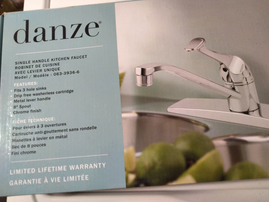1000+New in box, never installed. Includes all parts and installation instructions. fits 3 hole sinks 8" spout chrome finish