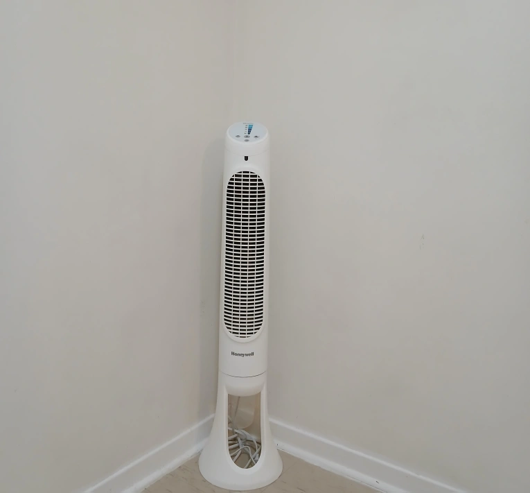 This is a Honeywell tower fan. It is in working condition and features a variety of speed settings. It also has remote control.