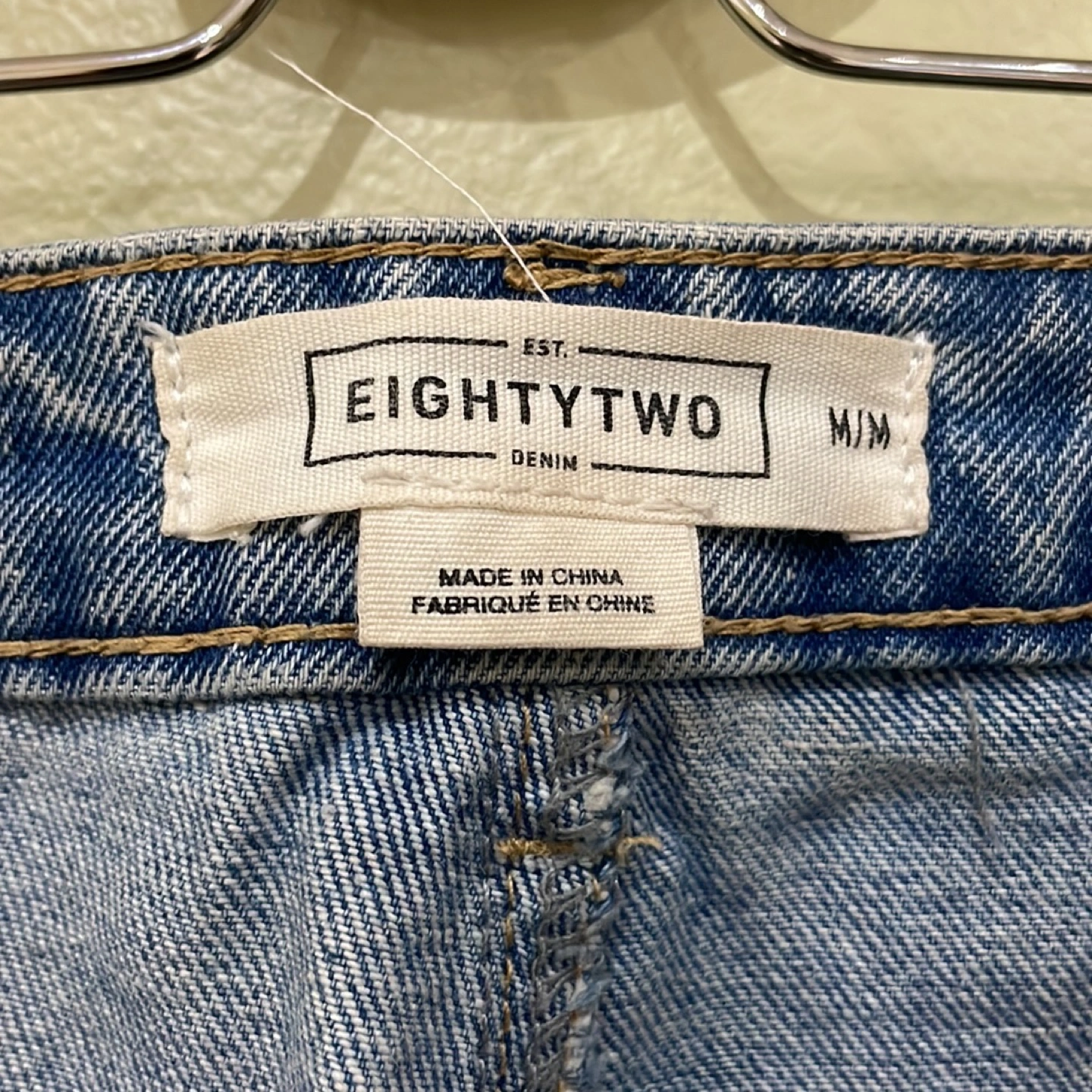 Preloved ARDENE light washed denim skirt in great condition! Has 4 pockets, button/zipper front and bit of distressing at bottom of skirt. 14” in length.