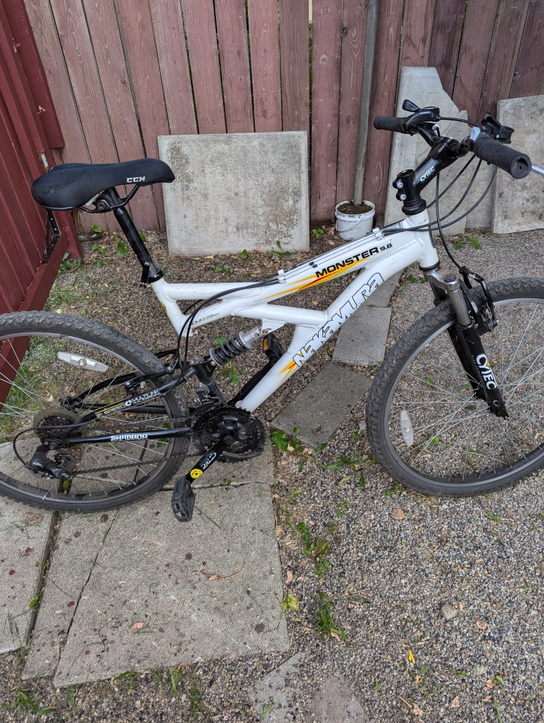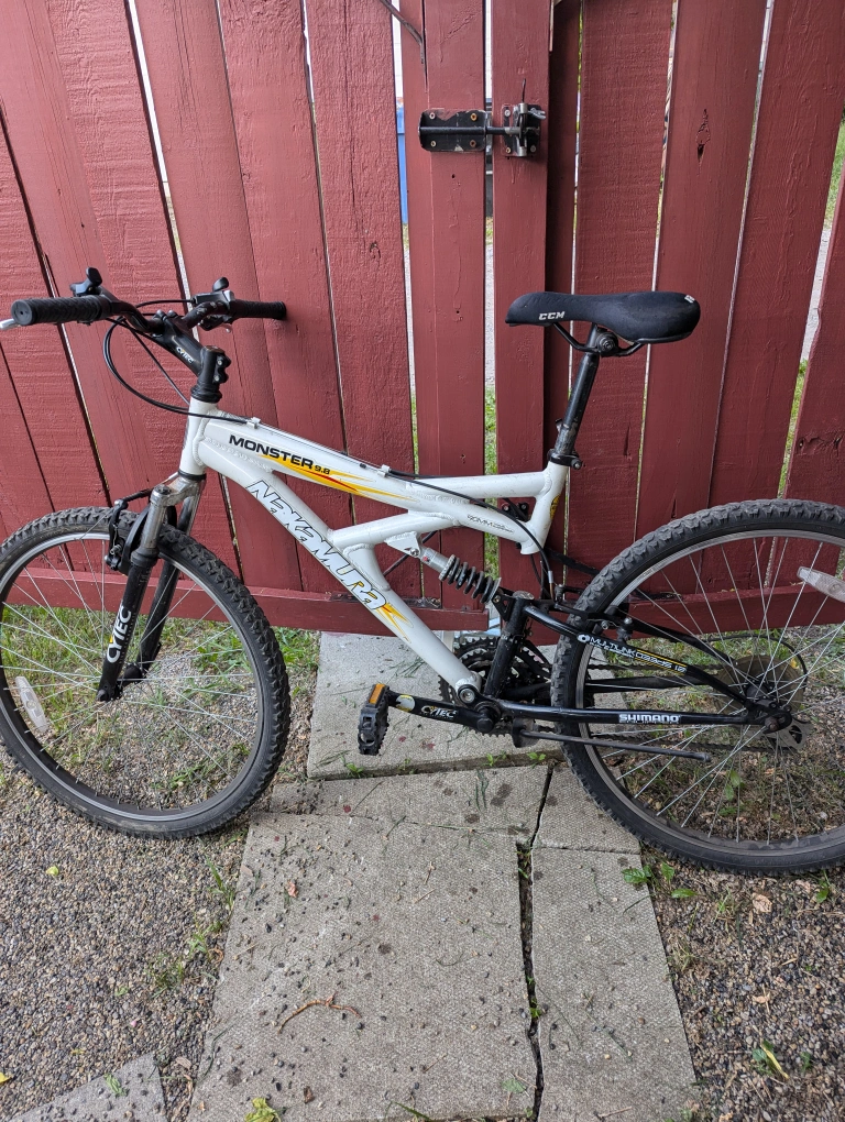 This is a used Nextra Monster 24 Mountain Bike with a Shimano 7-speed shifter. The bike is in good condition, but does show some signs of wear and tear. It is ready to be enjoyed on the trails!