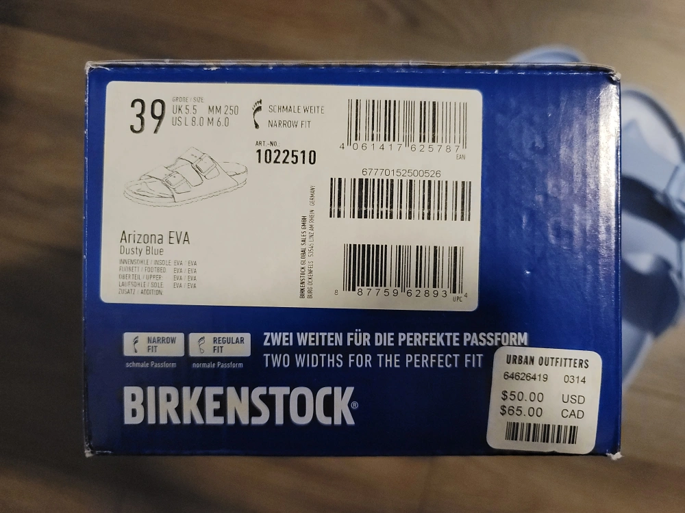 Brand New Birkenstock Arizona EVA Sandal EU39 W8 M6 Dusty Blue