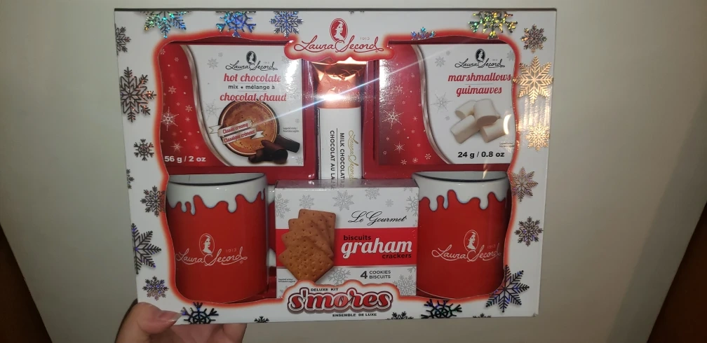 This gift set includes everything you need to make a delicious s'more including hot chocolate mix, graham crackers, and marshmallows. The set also comes with two mugs.