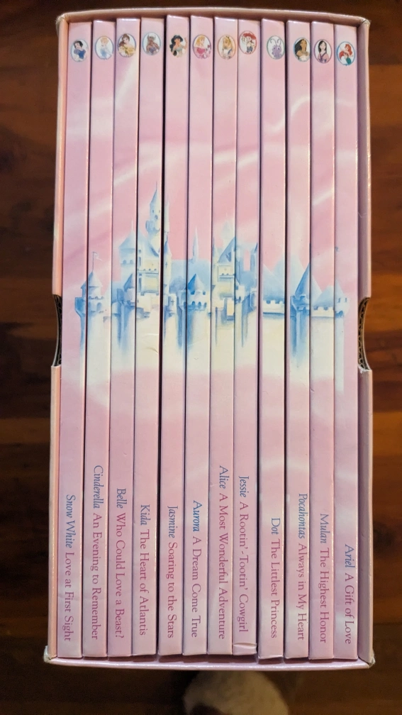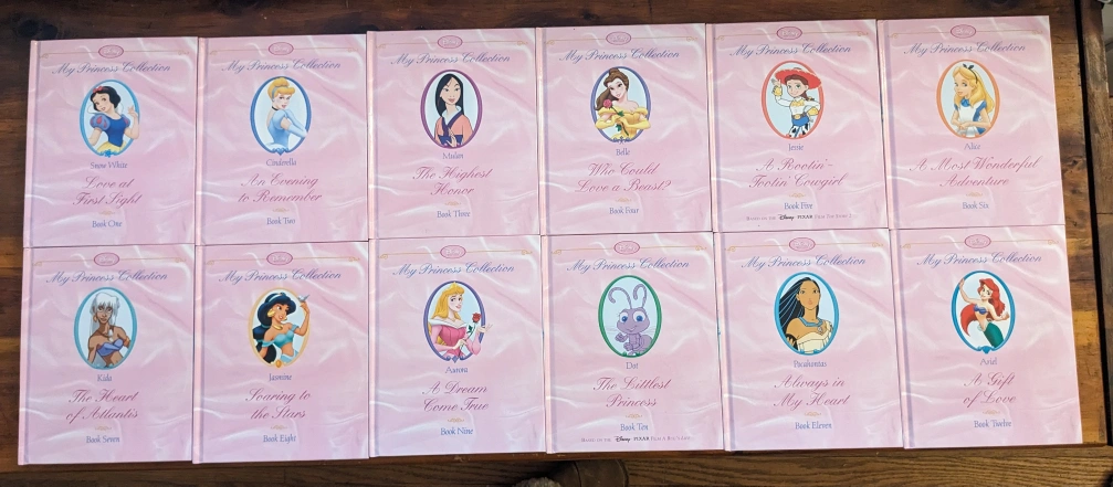 Perfect Christmas gift! Complete box set of 12 pink hardcover books making up the Disney My Princess Collection. Includes stories starring these princesses: