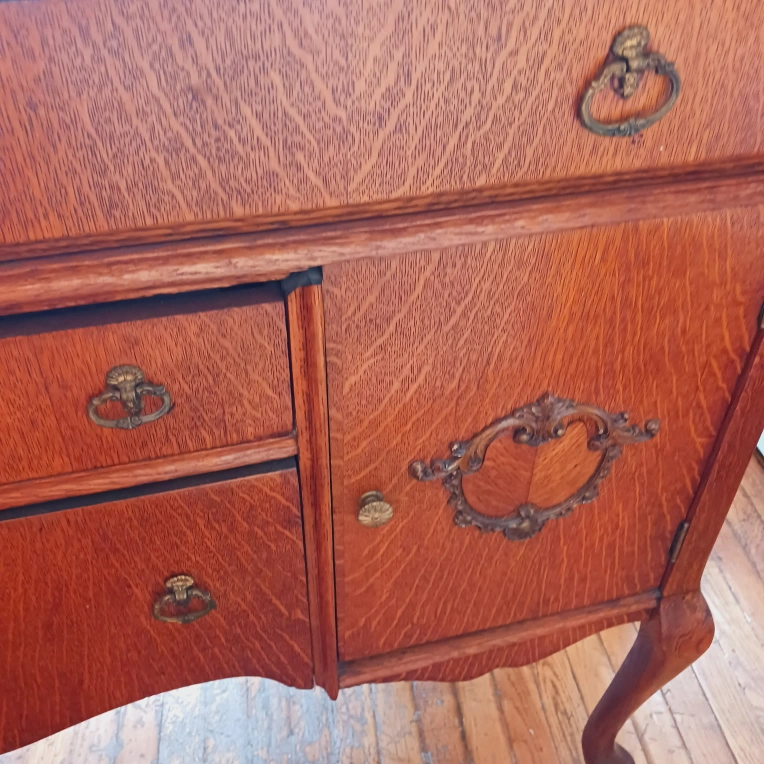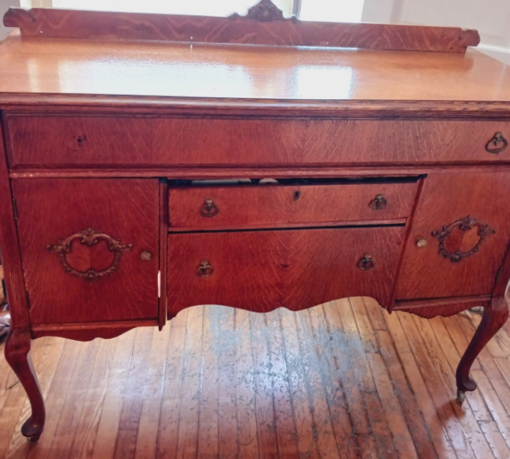 BEST OFFER !! "McENERY'S FURNITURE BROOKLYN NEW YORK" MARKED , HANDMADE !BEAUTIFUL ANTIQUE 1890s HANDMADE OAK WOOD BUFFET/SERVER/ SIDEBOARD. . IT HAS 5 DRAWERS. HANDMADE IN BROOKLYN, NY. 53"×40"× 21".
