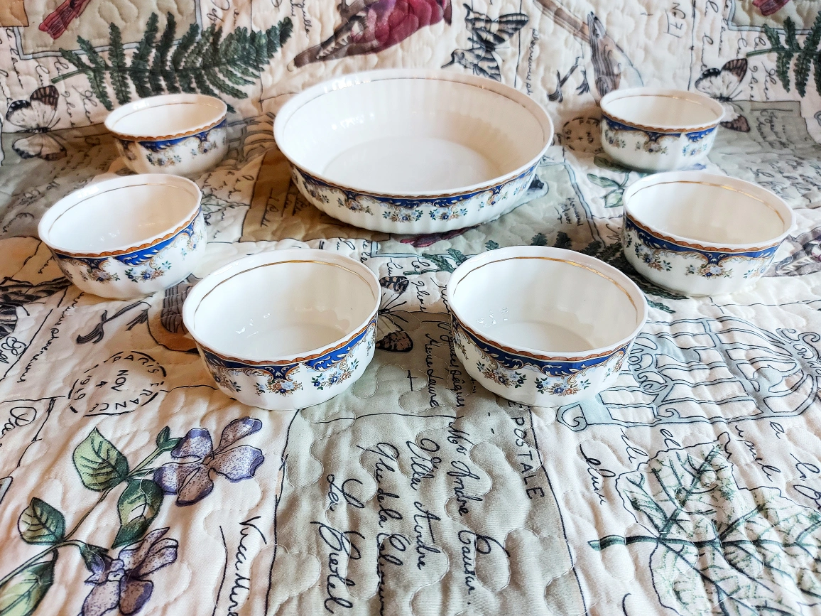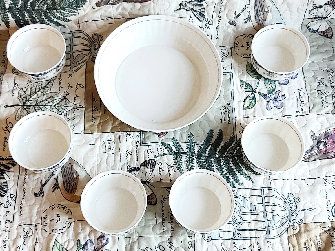 Six Small Bowls: Perfectly sized for individual servings of soups, desserts, or side dishes. Each bowl complements the large serving bowl, creating a harmonious and elegant table setting.