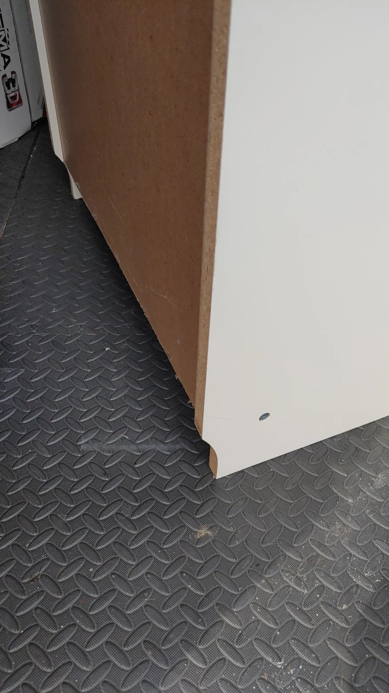 Bottom corner on back made to fit against wall baseboard/moulding (2nd picture)
