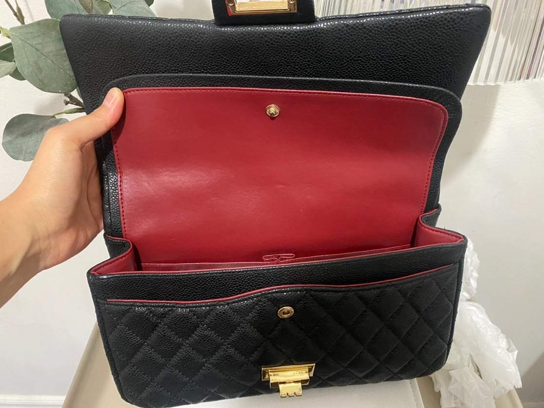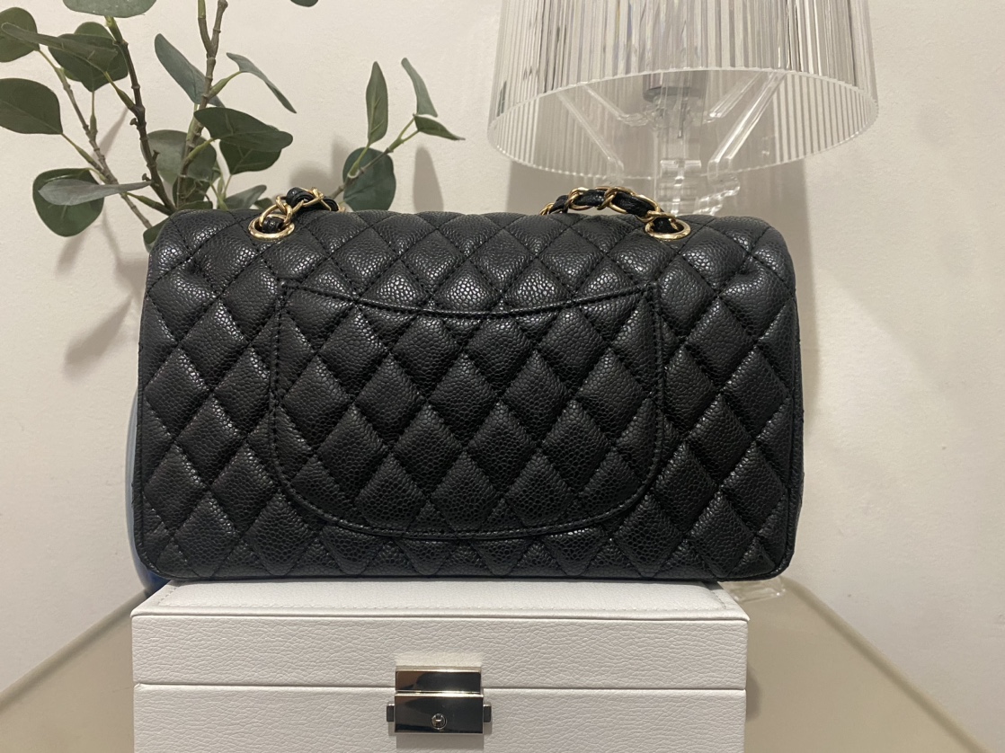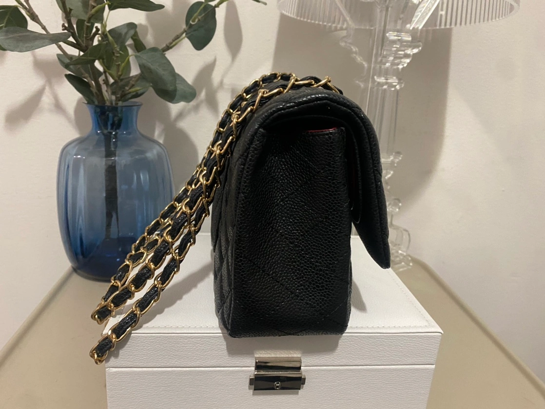A cowhide leather quilted chain bag with gold hardware in black. Never used.