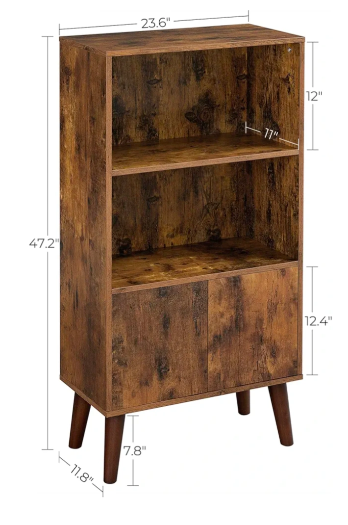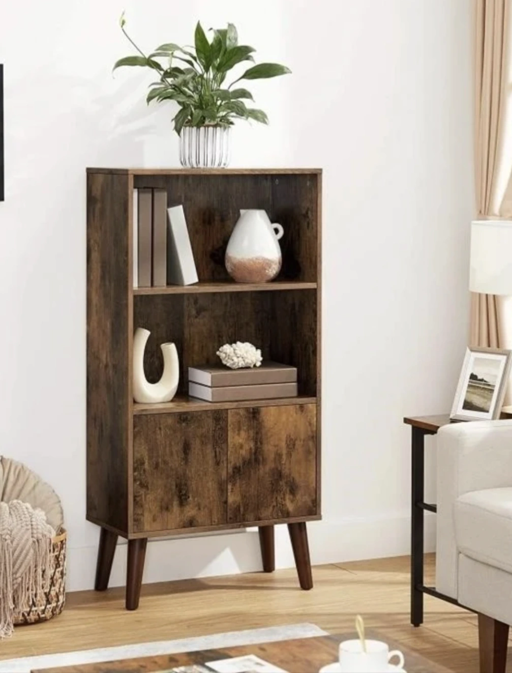 This bookcase features a distressed woodgrain finish and has 2 shelves and two doors with a mid-century modern style. Very versatile piece, not too large or small. Gorgeous finish - great addition to any room. BNIB - porch pickup preferred but can meet up as well.