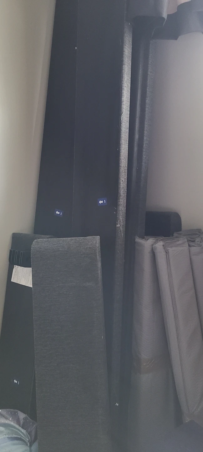 • Composition: solid and/or engineered wood frame and slats; woven exterior and slat upholstery; non-woven interior and slat upholstery