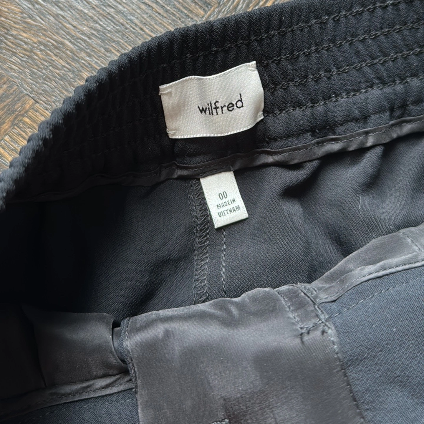 These are high-rise, wide-leg pants with a classic fit, flat front and elastic back waist. They're made from Crepette™ — Wilfred’s iconic crepe fabric famous for its subtle texture and breezy, effortless drape. It’s sourced from an innovative Japanese mill.