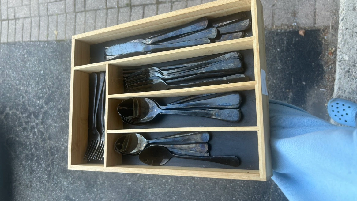 full all black cutlery set with organizer bought off amazon in 2022, only used for a year and a half.