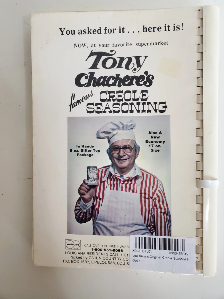 Louisiana's Original Creole Seafood Recipes by Tony Chachere is a vintage cookbook published in 1982. This 4th printing features illustrated pages and is spiral-bound for easy use in the kitchen. Filled with authentic Creole and Cajun seafood dishes, this cookbook is perfect for young adults, ages 9-12, and adults looking to explore the flavors of Louisiana cuisine. Written in English, this chapbook/pamphlet is a must-have for anyone interested in cooking seafood dishes with a Creole twist.