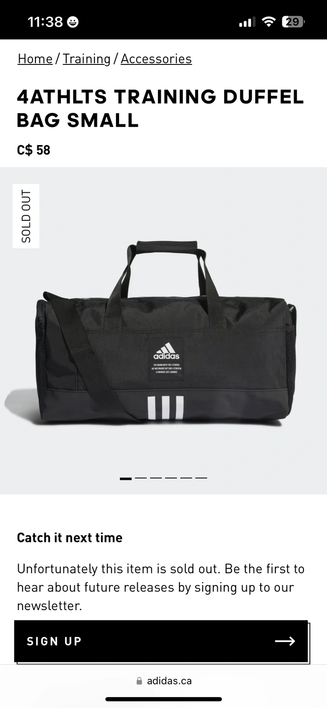 The perfect bag for a quick session at the gym. Ample room for your shoes and clothes. Two mesh pockets on each side. Clean interior, lightly used. Comes from a smoke free, pet free environment.