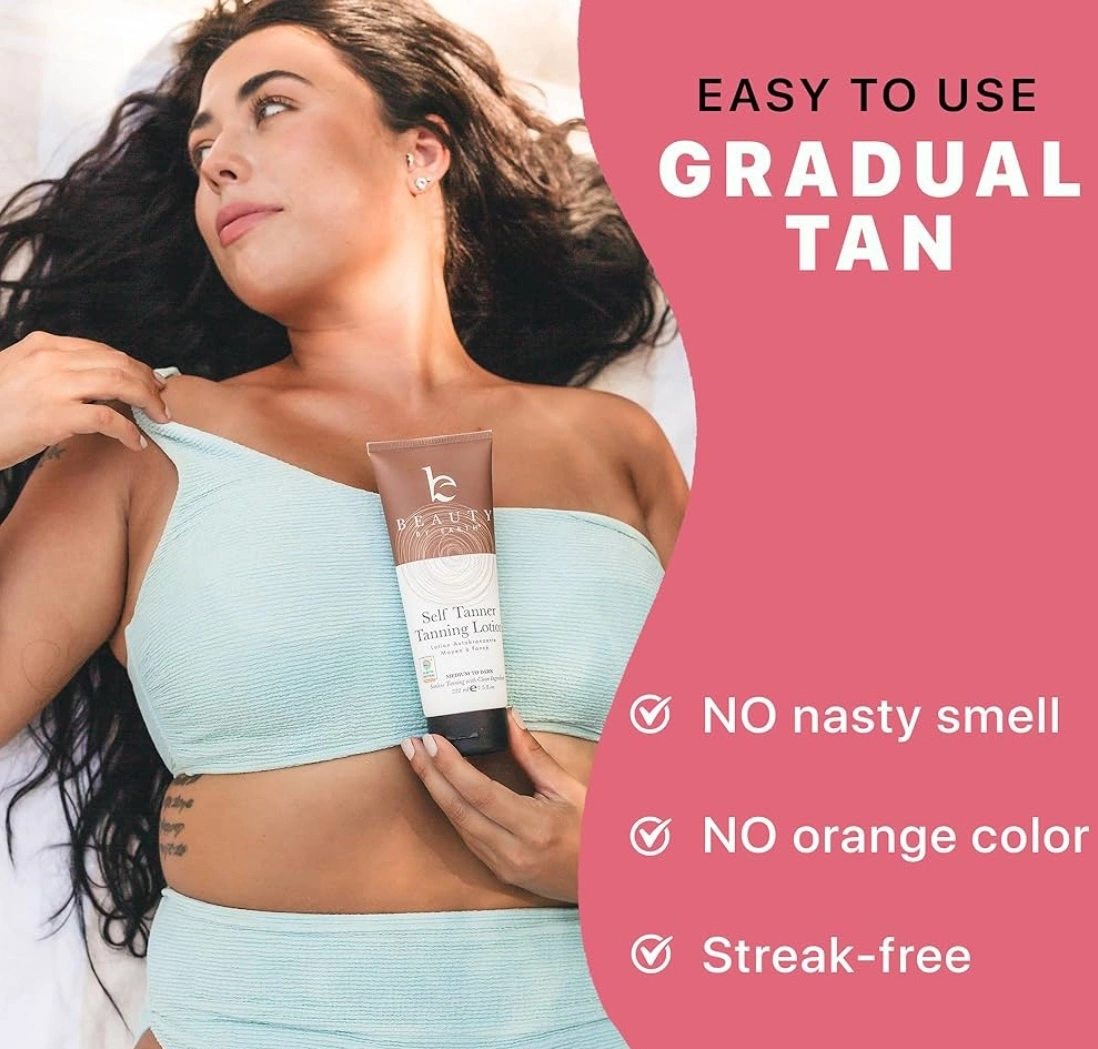 Item form Lotion Skin type All, Oily, Combination, Sensitive, Dry, Normal Material type free Artificial Dye Free, SLS Free, Sulfate Free, Gluten Free, Paraben Free Brand BEAUTY BY EARTH Product benefits Hydrating, Easy Application, Long Lasting, Streak-Free Tan, Natural Looking Tan, Sun-kissed glow Skin tone Olive or Tan MADE WITH CLEAN AND SKIN-FRIENDLY INGREDIENTS - Our formula is vegan, toxic-free, and made in the USA with natural ingredients such as aloe vera, coconut, and shea butter. Perfect for ensuring a clean and cruelty-free fake tan tanning lotion. A NATURAL, STREAK-FREE, SUN-KISSED GLOW: Goodbye to orange hues and hello to a natural-looking tan. Our autobronzant corps gradual tanning lotion comes in fair to medium & medium to dark shades so you can find the perfect shade for your skin types. EASY APPLICATION WITH LONG-LASTING RESULTS: Our tanning lotion offers a hassle-free application and delivers a beautiful tan that lasts for days. With proper care, maintain your gorgeous glow without any sun damage with our autobronzant corps.