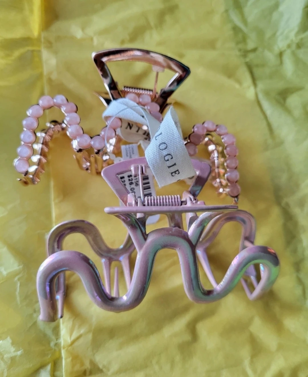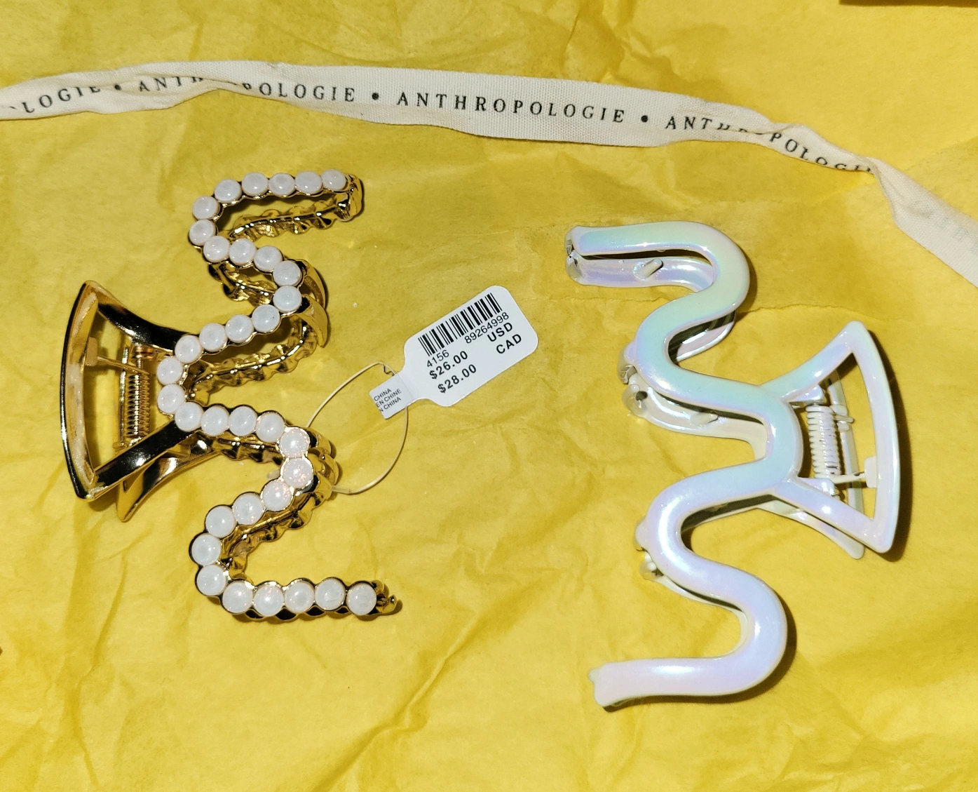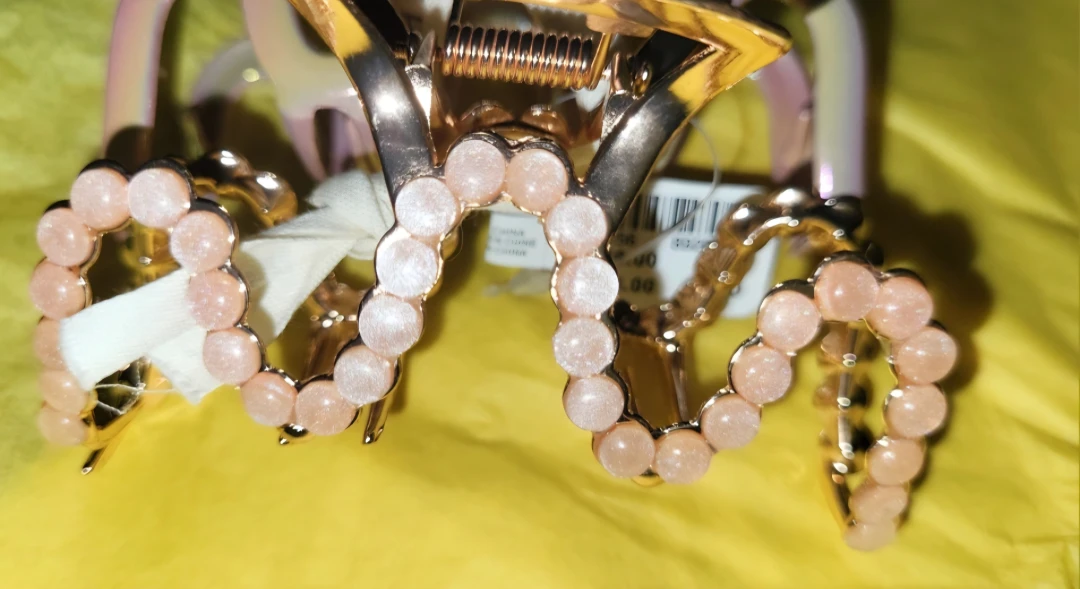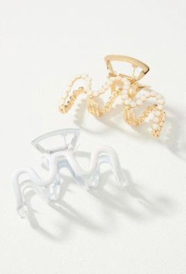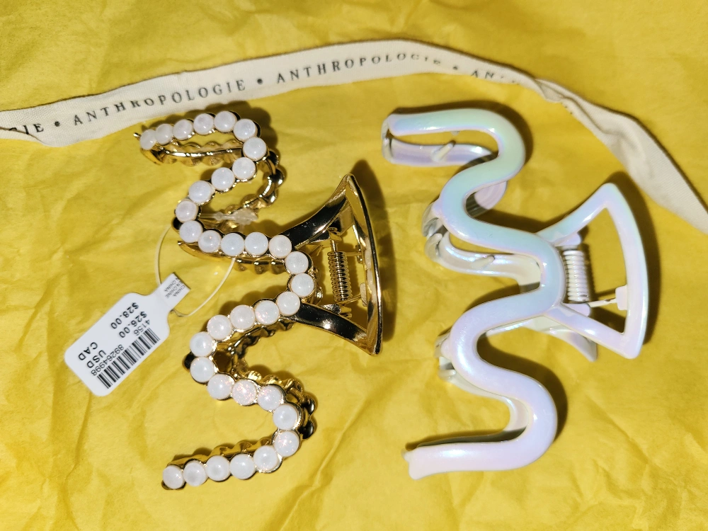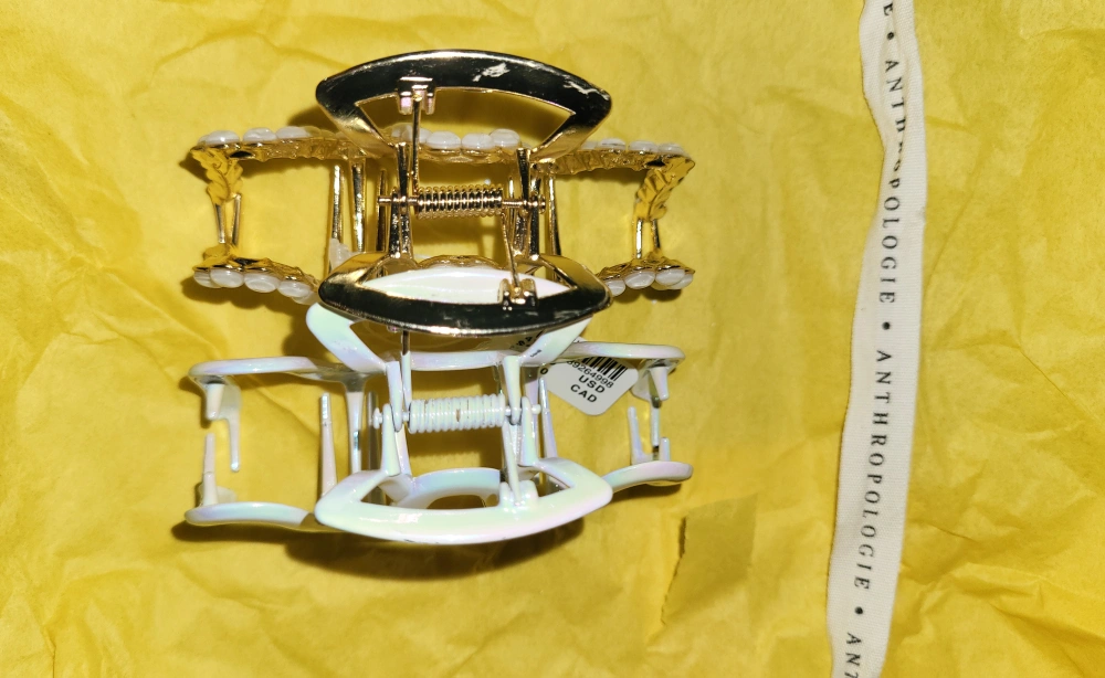 Authentic Anthropologie Banana Holiday Hair Claw Clips Iridescent Gold Pearl White Brass