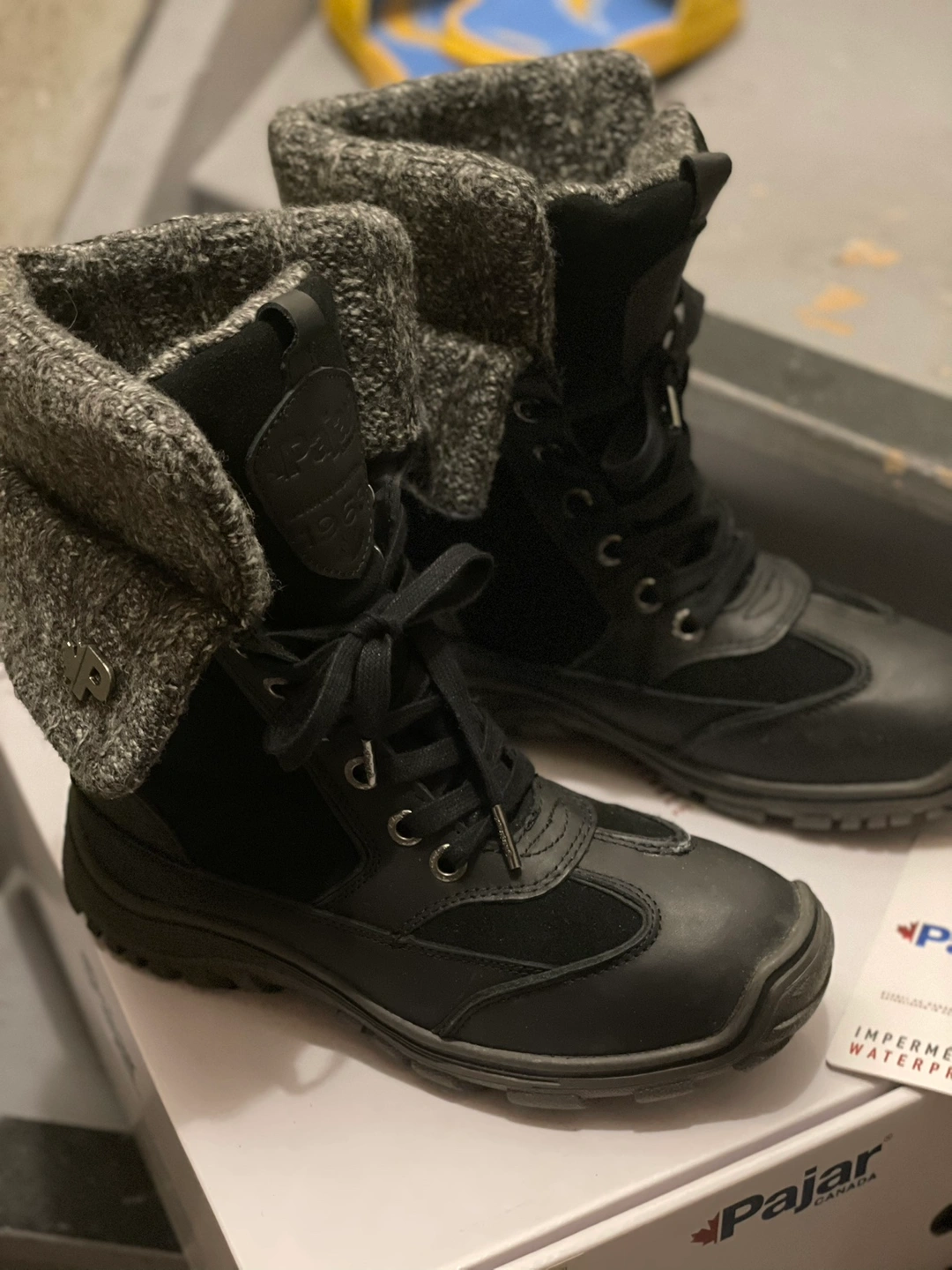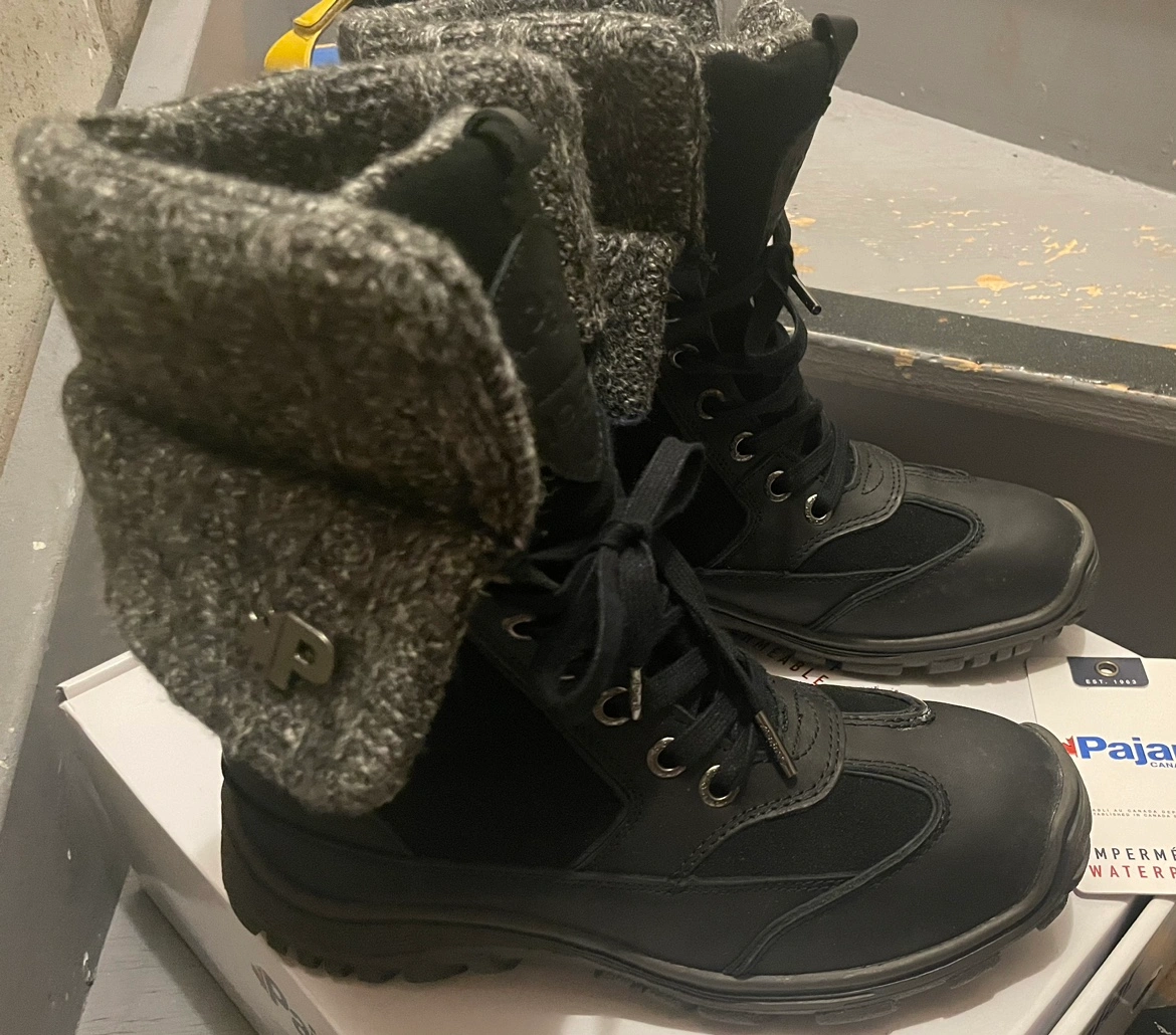 75Pajar Ava SZ 8-8.5 Boots Black Leather Waterproof Ankle Sweater Cuff