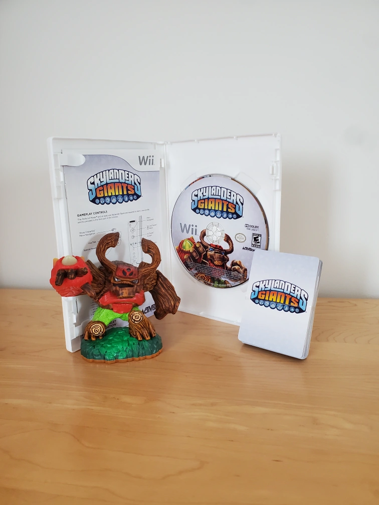 344This is a used game for the Wii console. It includes the game disc, trading cards and one Skylander character. Missing character poster and sticker sheet.