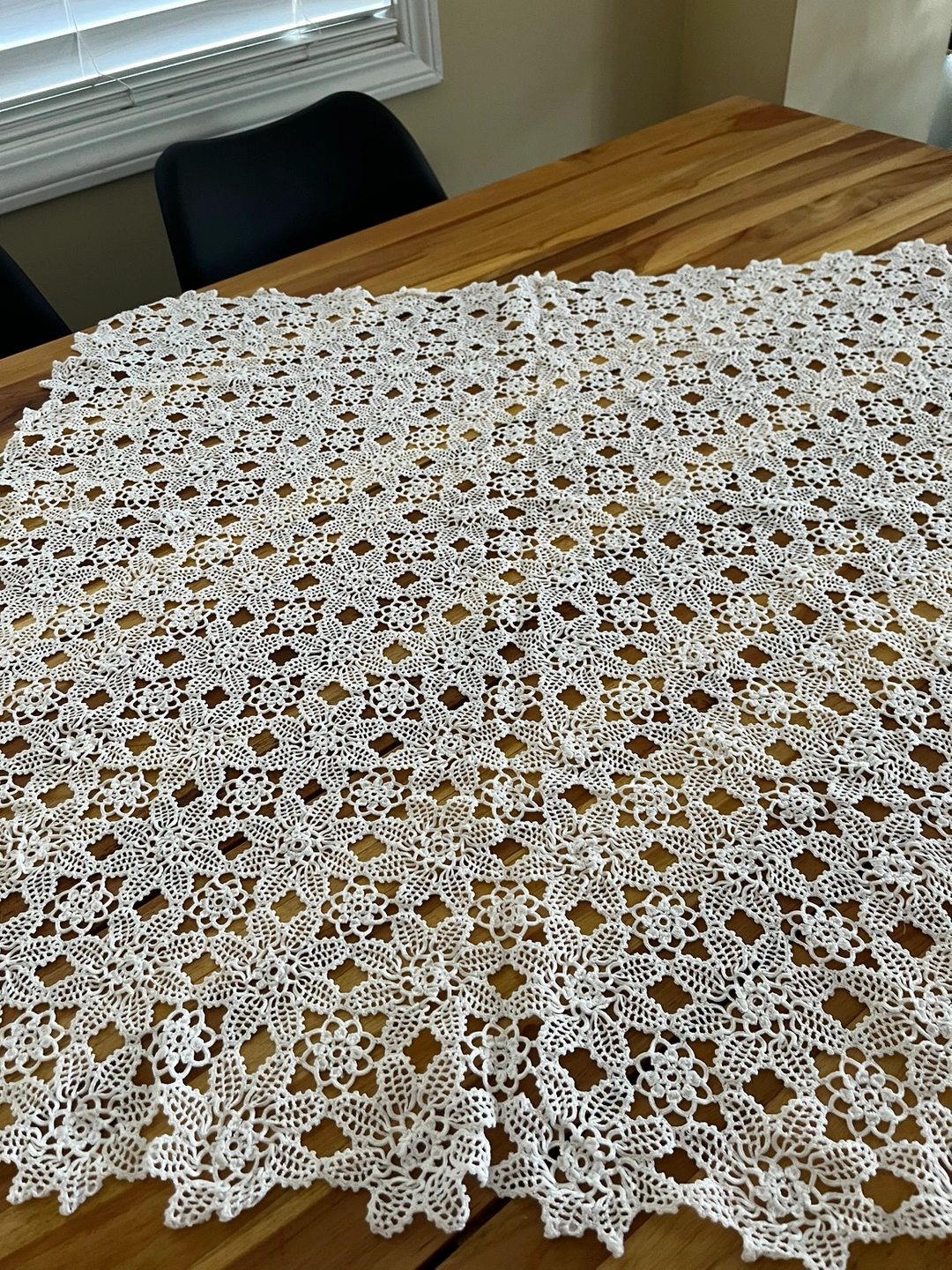 10White crochet tablecloth with a delicate floral design. Handmade Square Tablecloth 80cmx80cm