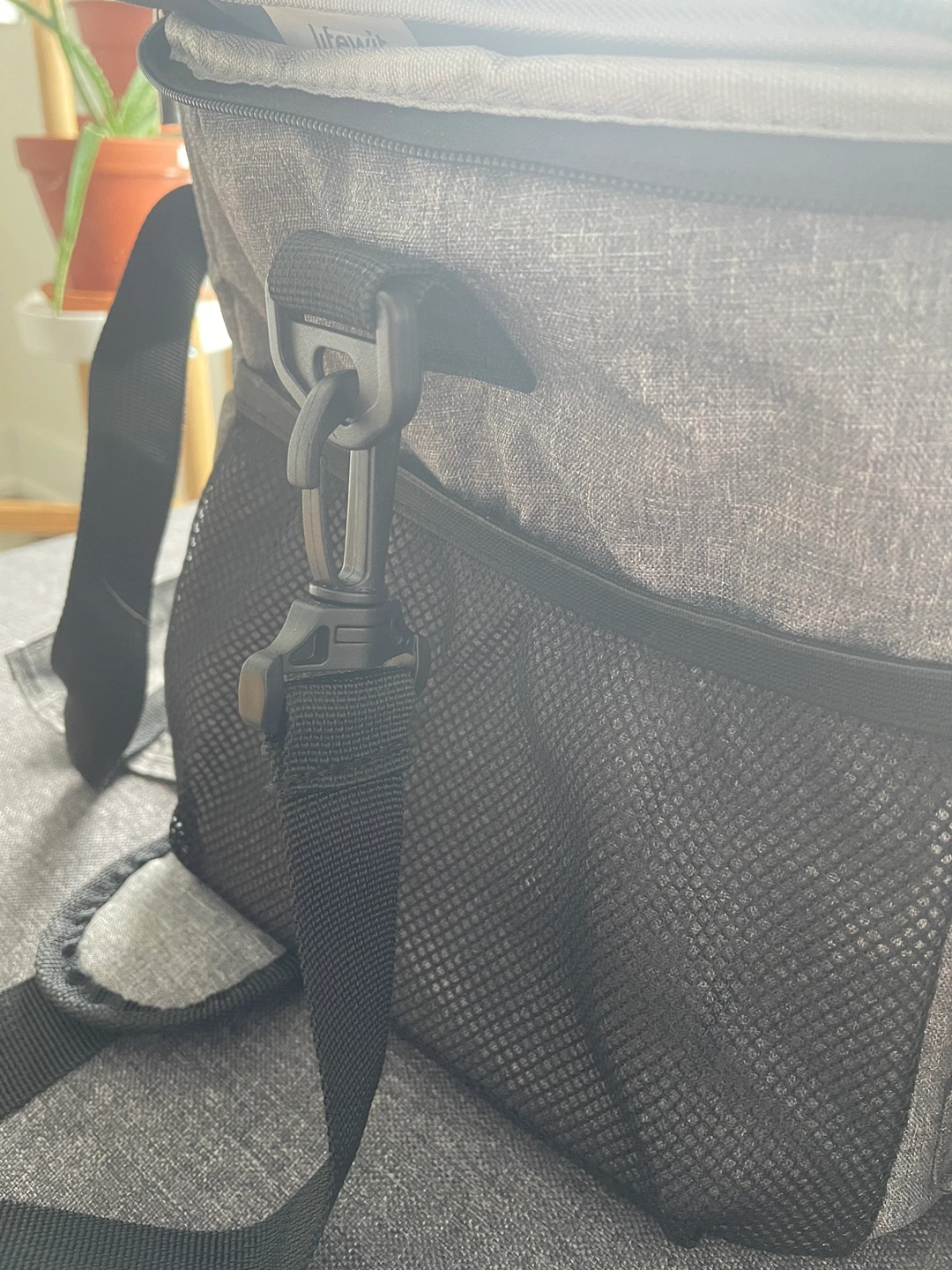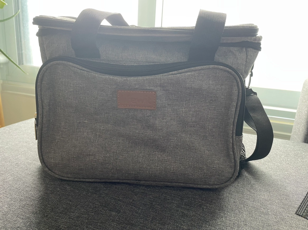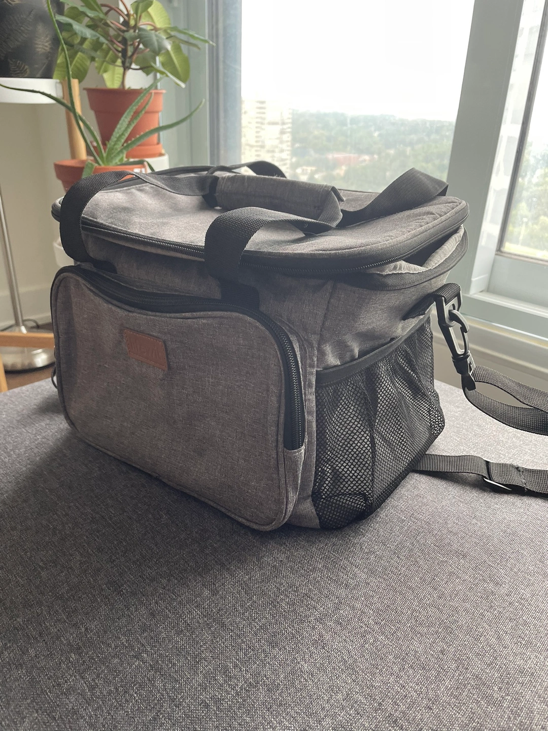 - Features: Insulated, leak-proof interior, outer storage pockets, sturdy handles, detachable shoulder strap