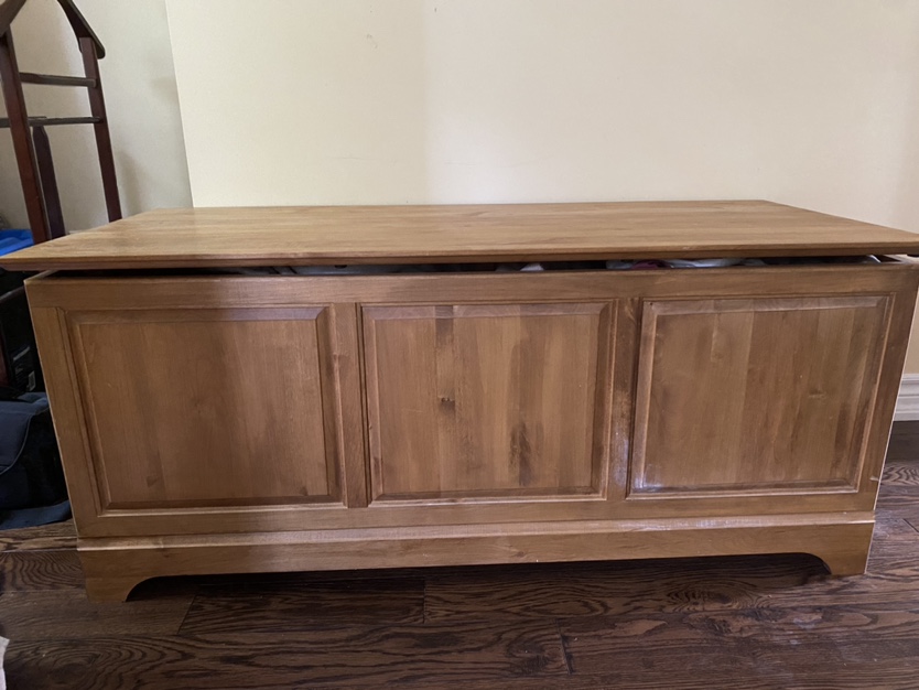 We need to make space as we had a flood in our computer room. We store all of our linen in this chest at the end of our bed frame. Sad to see this go so hope another family unit can use it!
