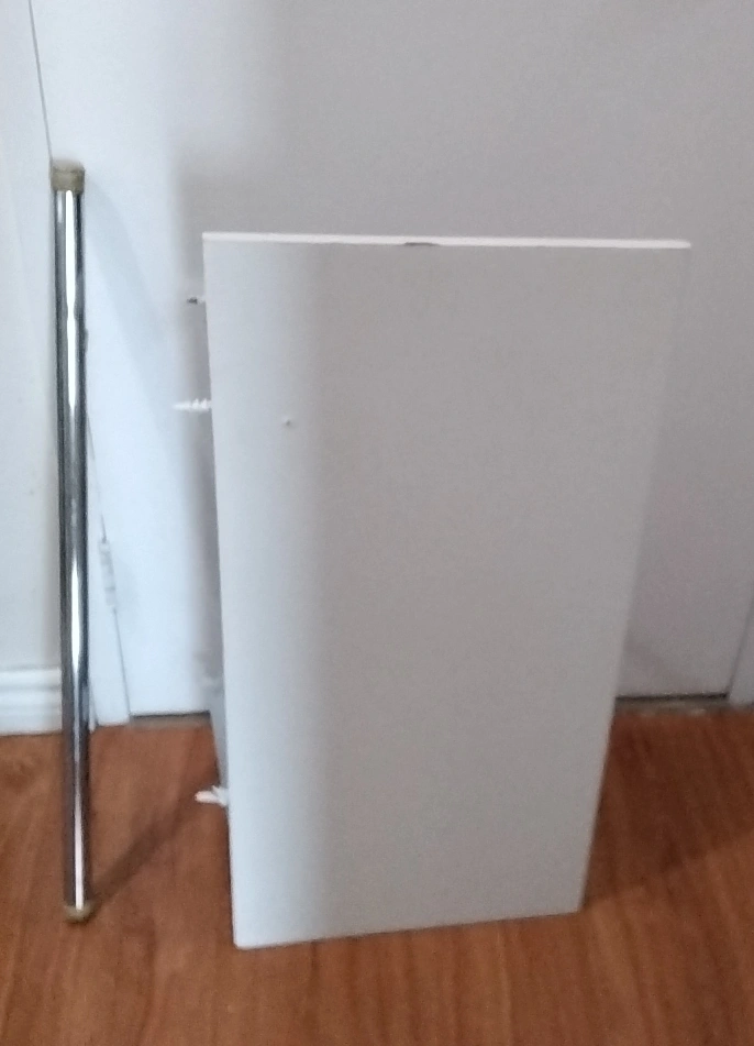 white wood shelf with brackets and rod in a good condition with a dimensions 31" ×15"