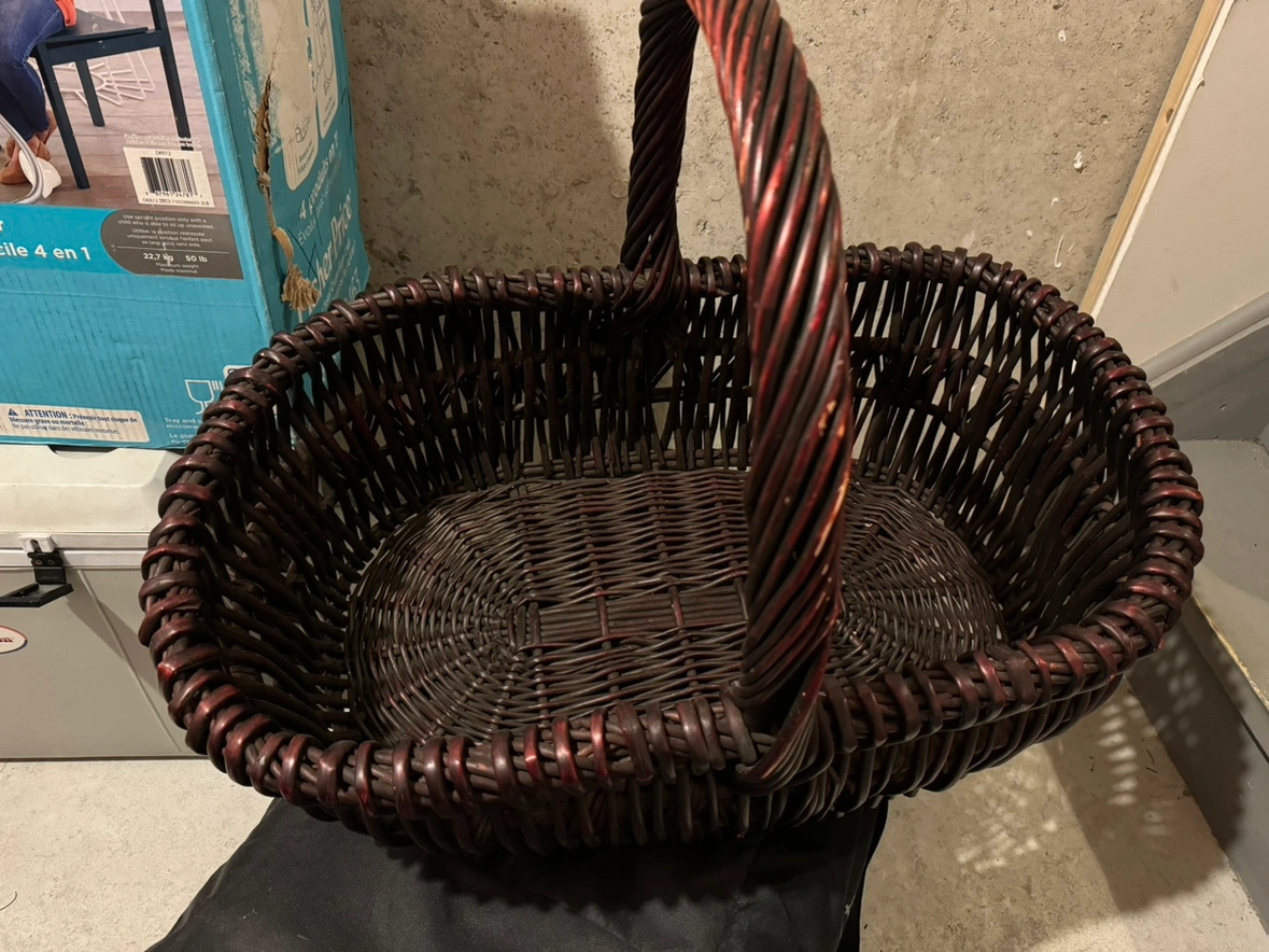 Buy & SellWicker BasketWicker BasketFreeThis is a woven wicker basket with a handle. It is oval shaped. It is dark brown in colour.WHERE TO MEETCheck LocationView MapSELLERYvonneNW Brampton36940 reviews0 chats·0 favorites·22 viewsSEND CHAT TO SELLERHi Yvonne! I’m interested in your listing.Hi Yvonne! I’m interested in your listing.Get the Karrot app to chatSign In to chat