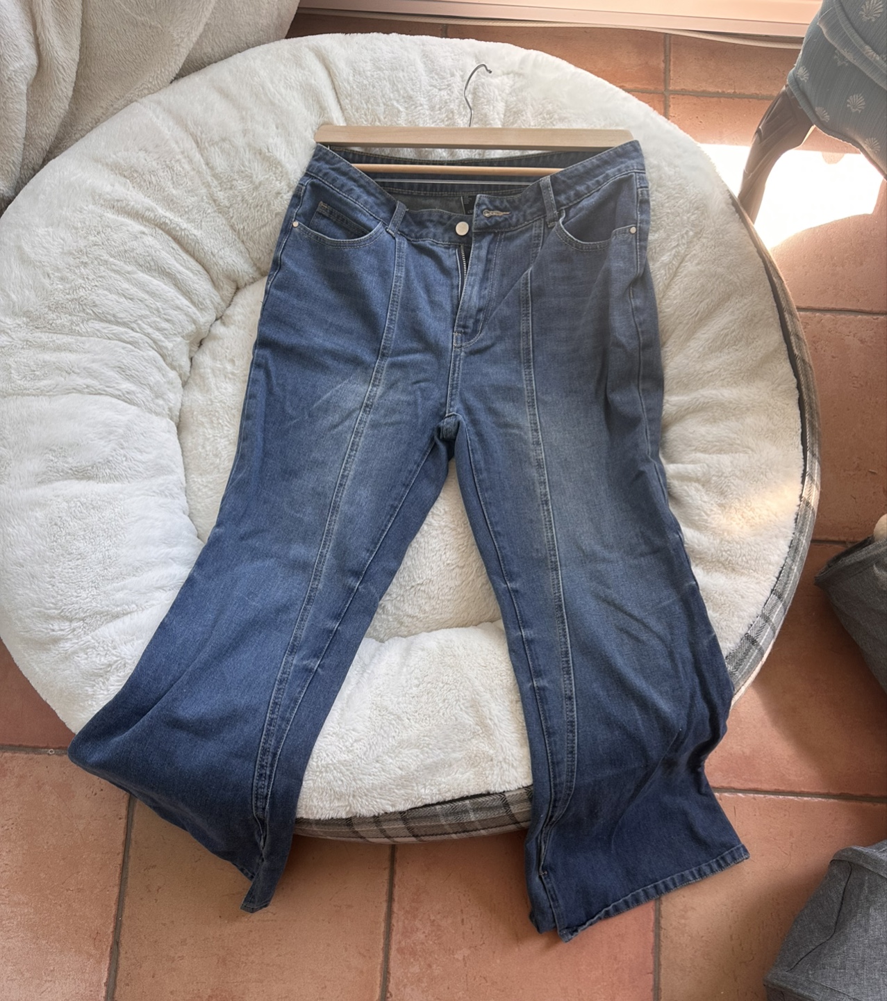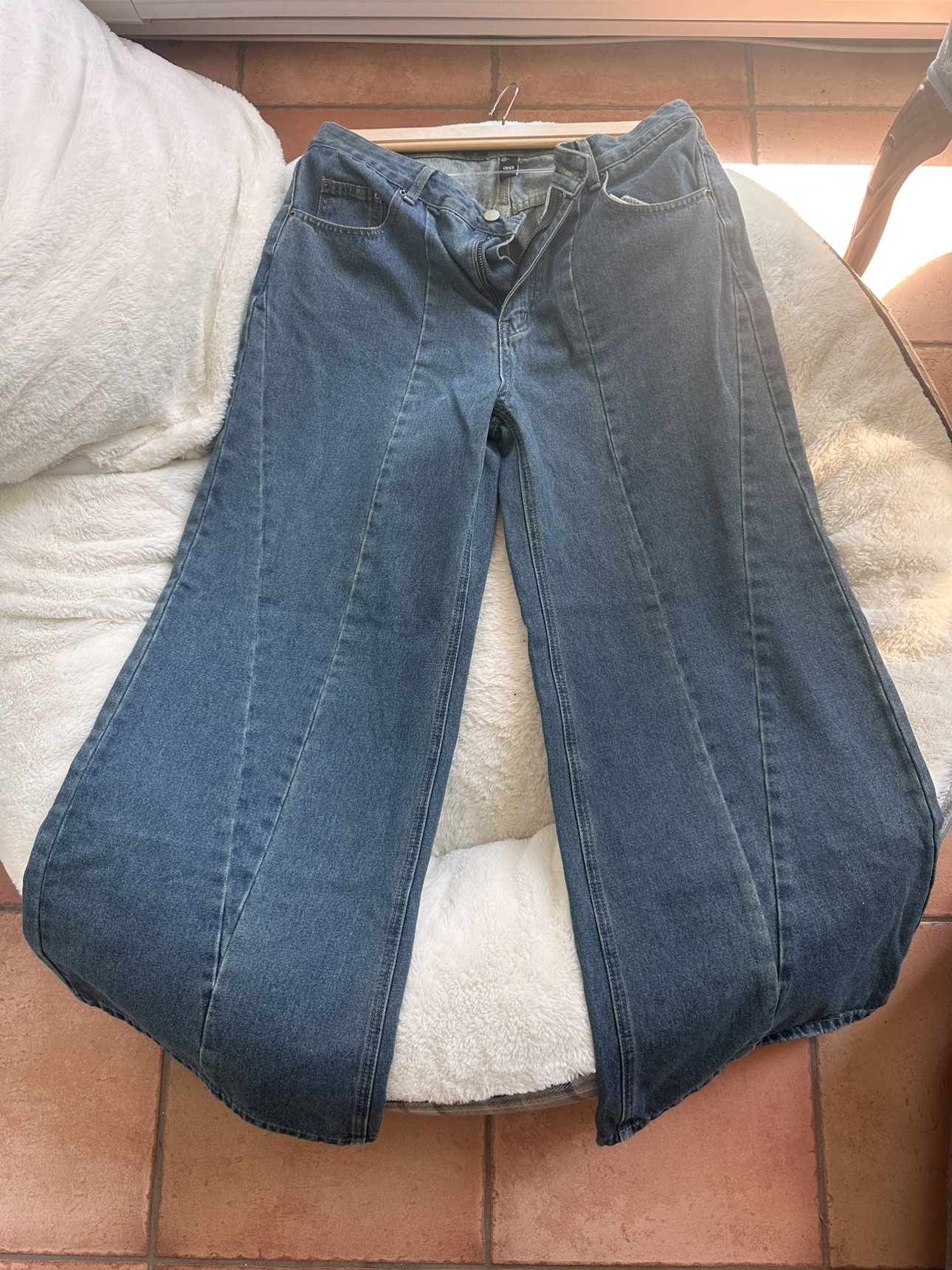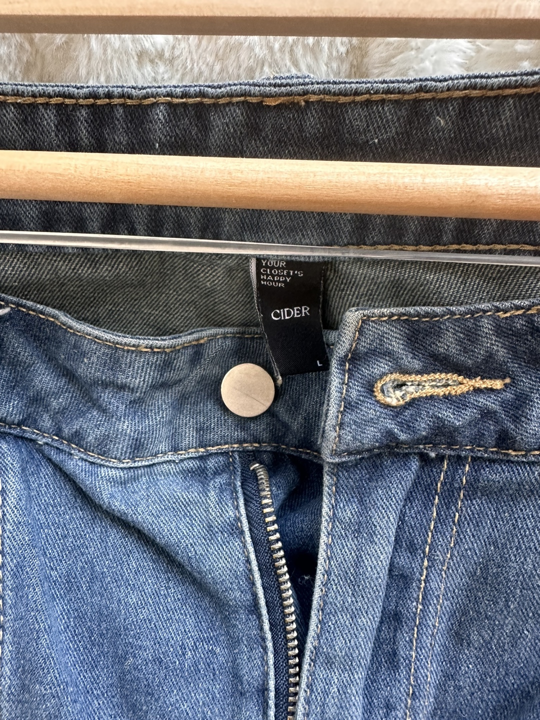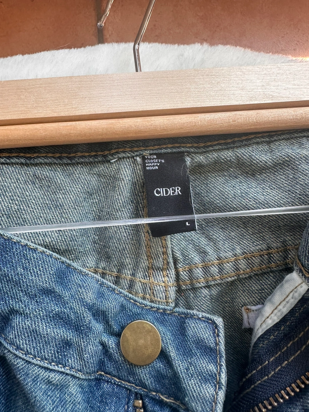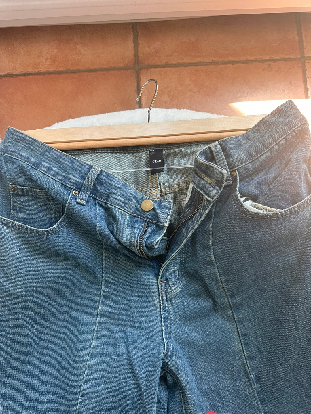 Cider brand. Like new jeans I bought them and my weight changed , they don’t fit me anymore. I could only wear them couple of times. I checked them carefully there are no damage. Just some cat hair because my cat likes sleping on my clothes-no scratch though ✨