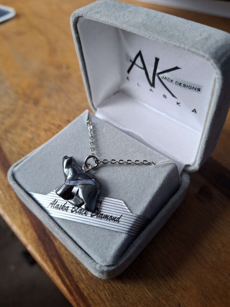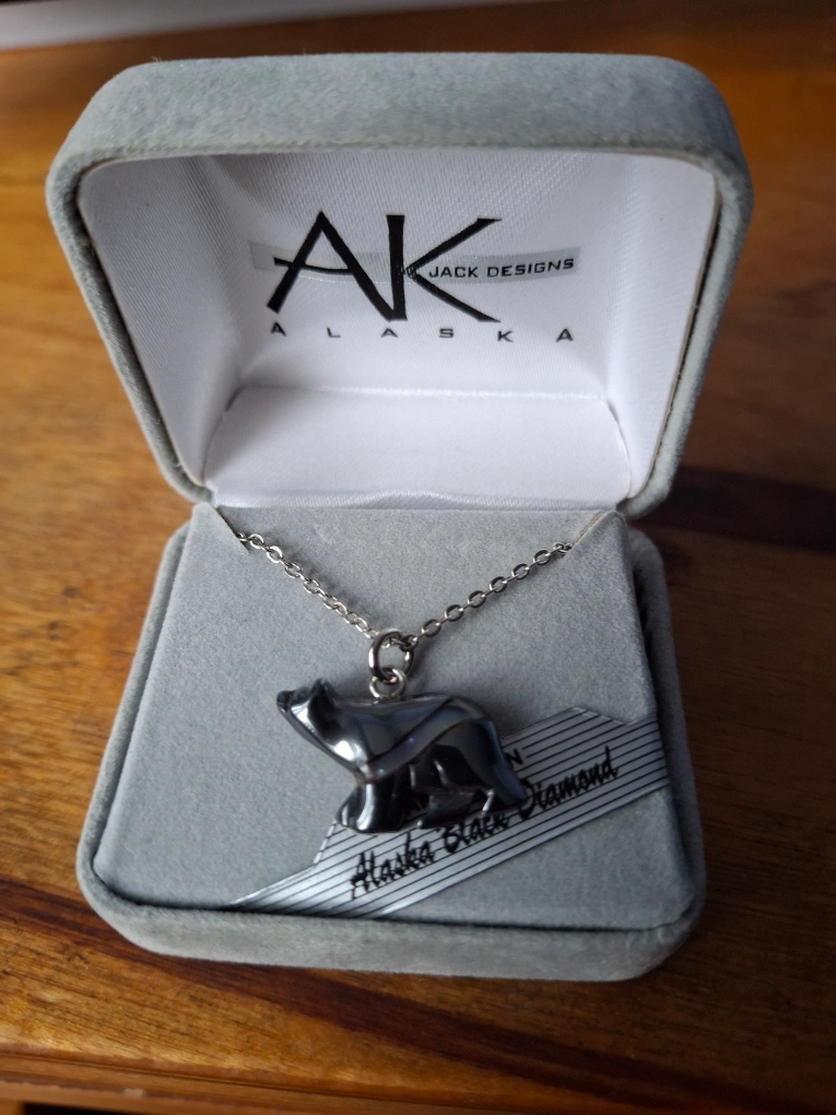 Silver chain with a black bear pendant. Never worn & in the original box.