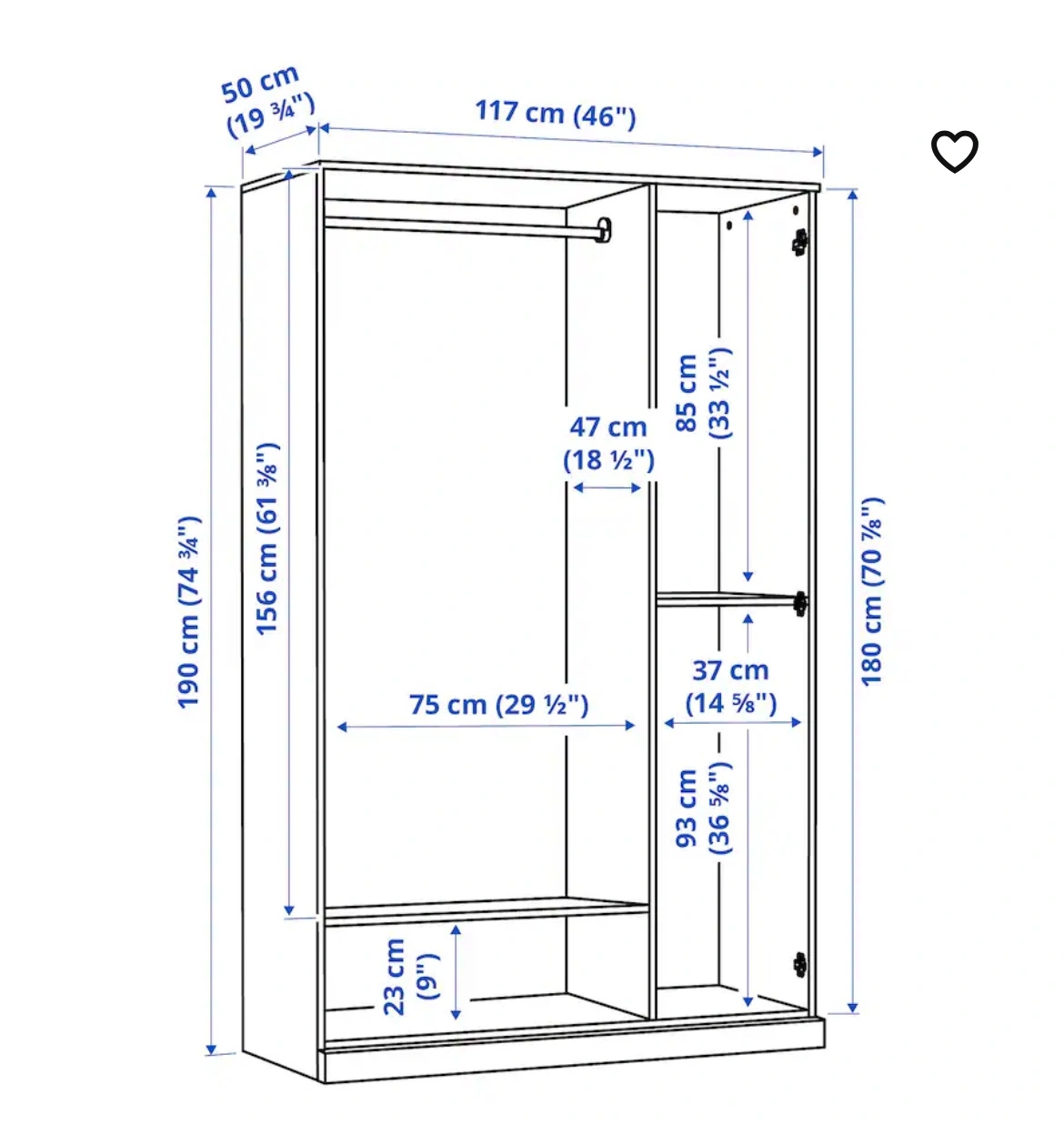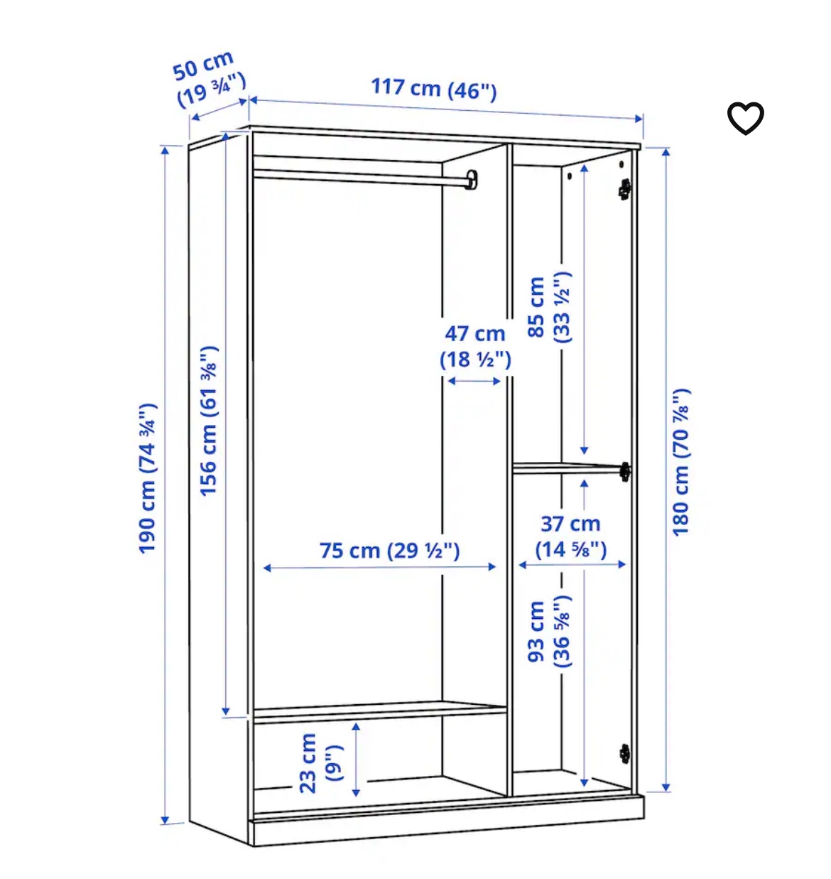 Ikea’s BRIMNES Wardrobe with 3 doors, white. In excellent condition and fully assembled. See last picture for full dimensions. Pick up only in Etobicoke.