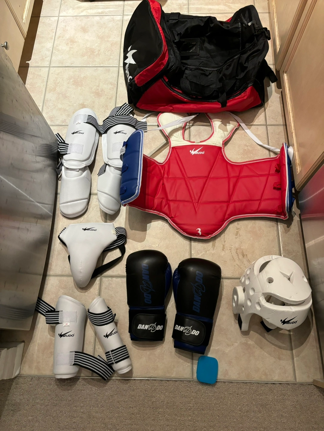 150Only 1 time used Taekwondo/Judo Sparring Gear complete set M size Smoke and pet free home Bayview and Sheppard main intersection