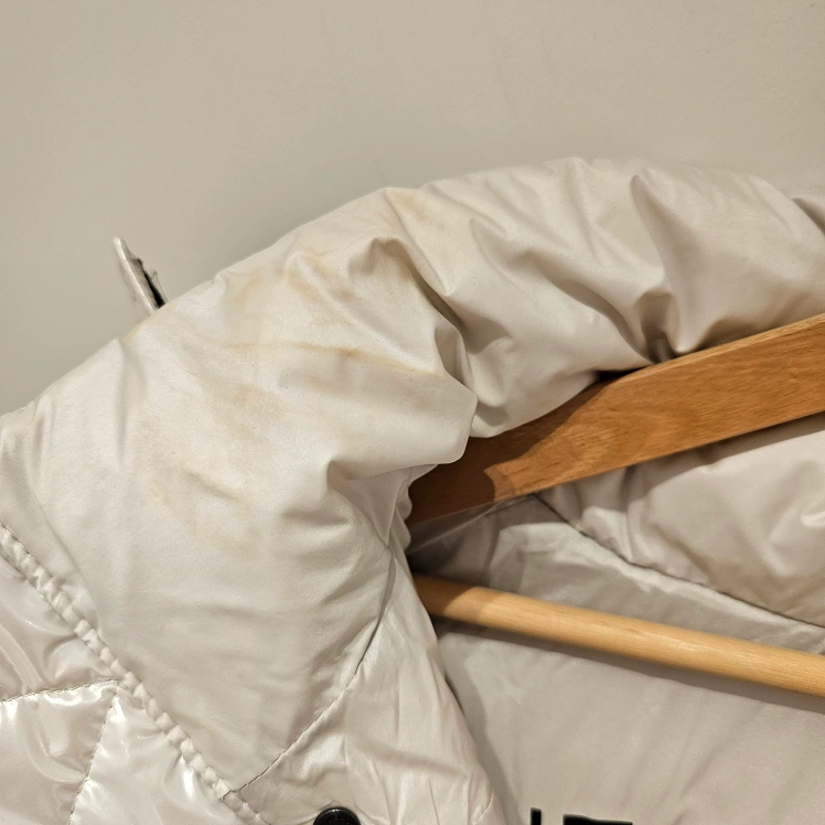 Minor flaws - minor makeup wear as shown, dry cleaning to get rid of.