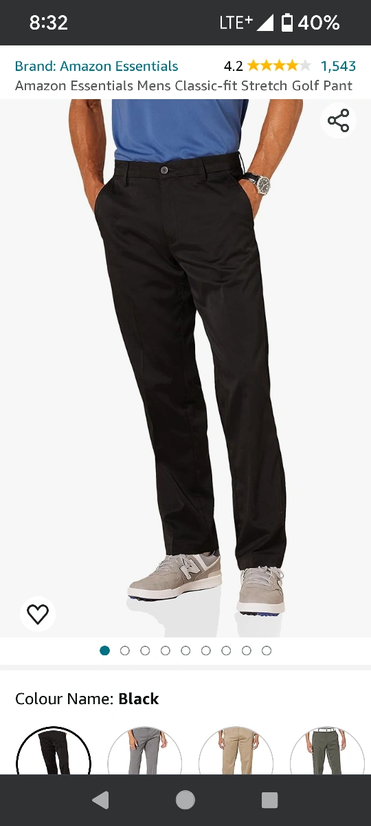 15Black, Size 36W x 32L, Classic-Fit, Stretch, Golf Pant. Brand: Amazon Essentials.