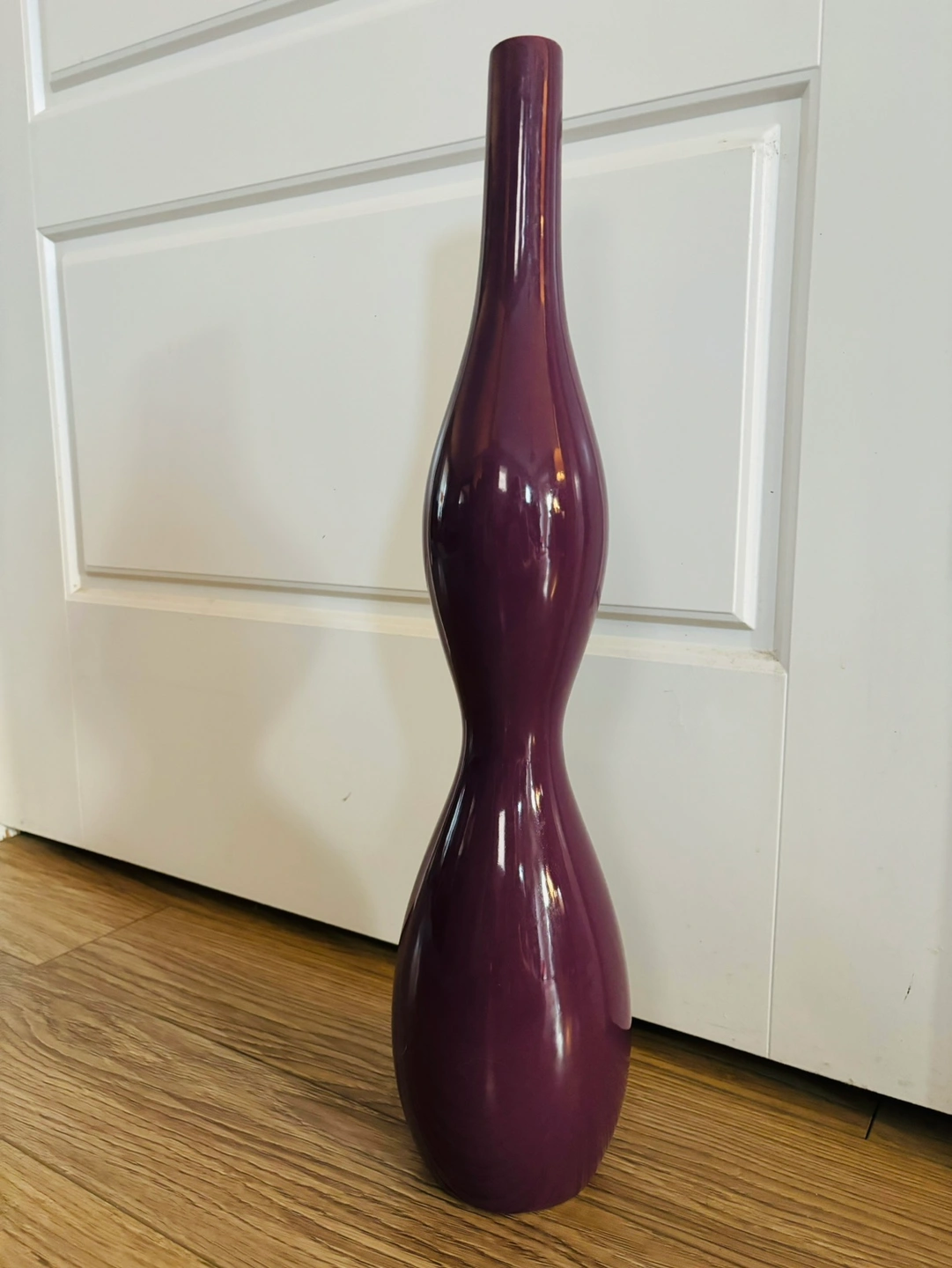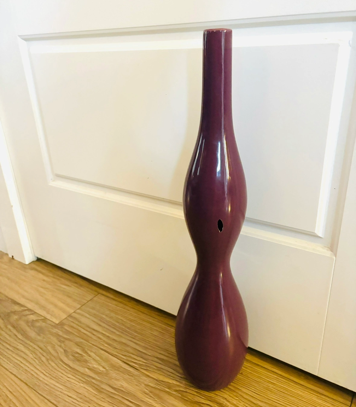 Tall ceramic vase with a purple glaze, small chip on backside, see last photo. Could easily turn it to the backside and it’s totally hidden.