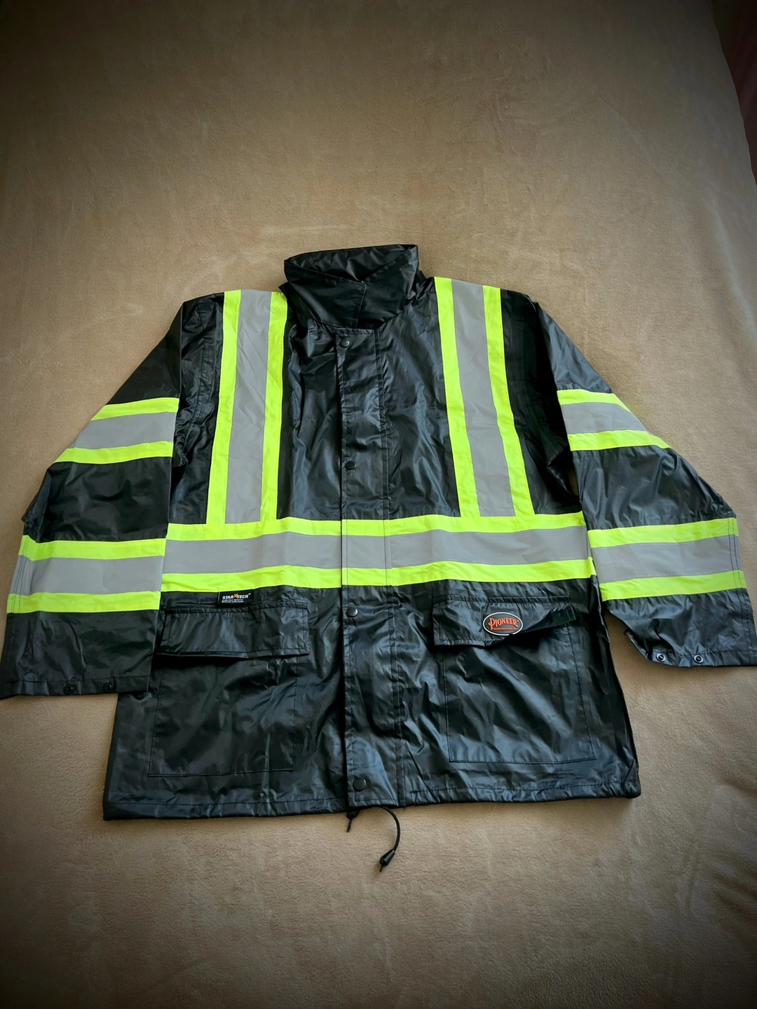 Stay safe and visible with this high-quality waterproof suit by Pioneer.