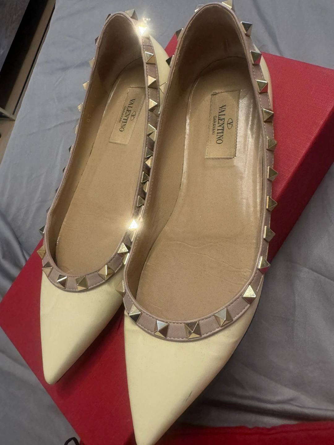 Valentino Garavani Rockstud ballerina in patent leather. Platinum-finish studs. Heel 5 mm/0.25''. Made in Italy. Comes with box and dust bag Soles has been protected.