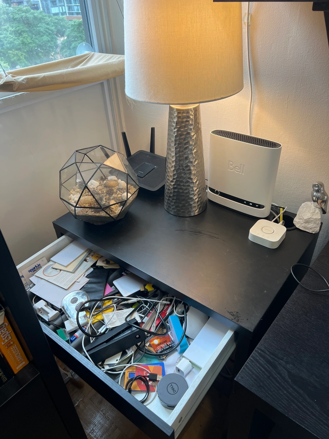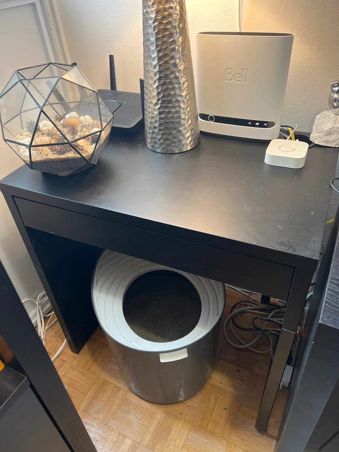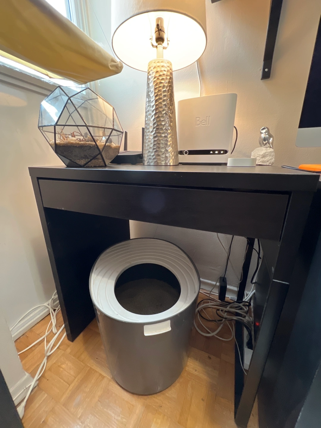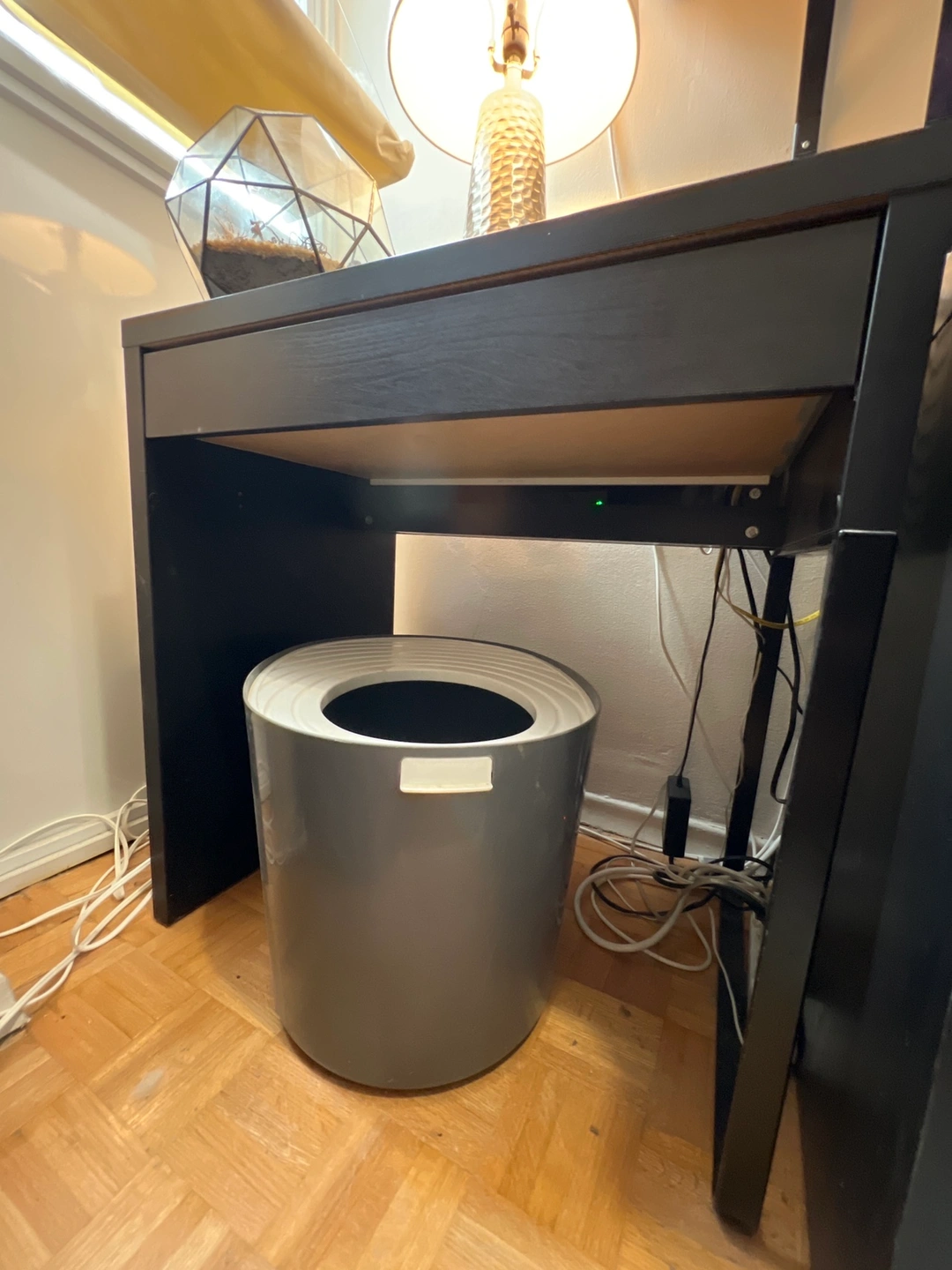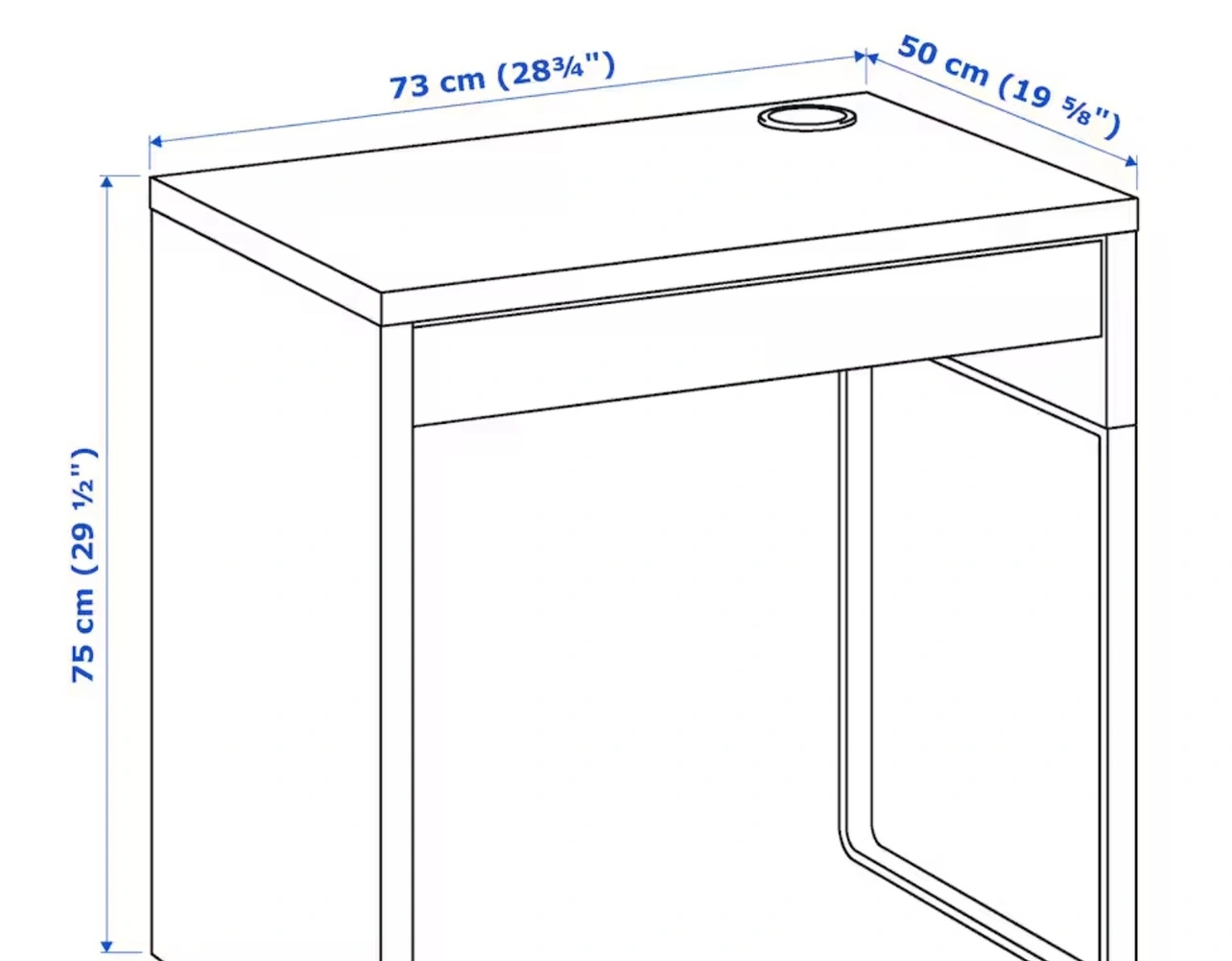 Small desk easy to keep cords and cables out of sight but close at hand with the cable outlet at the back.