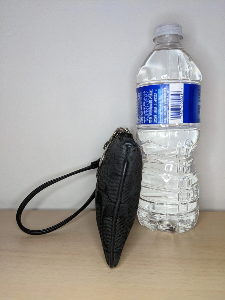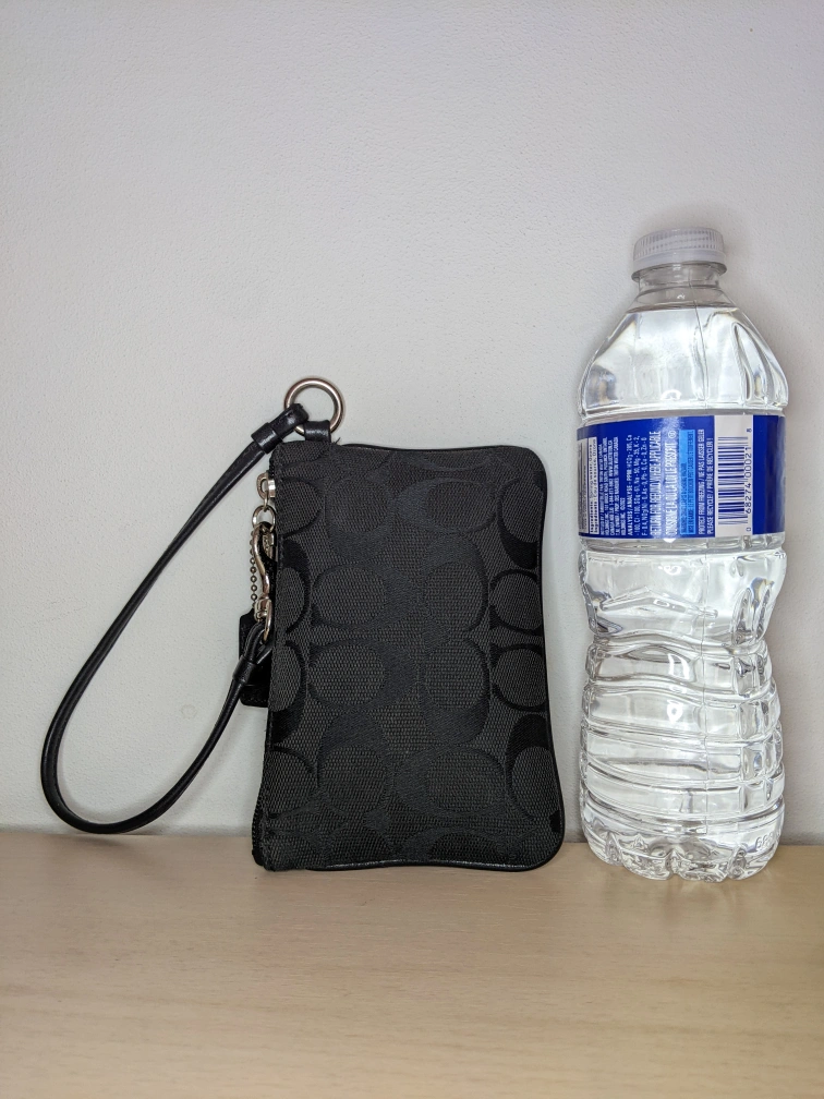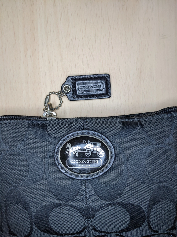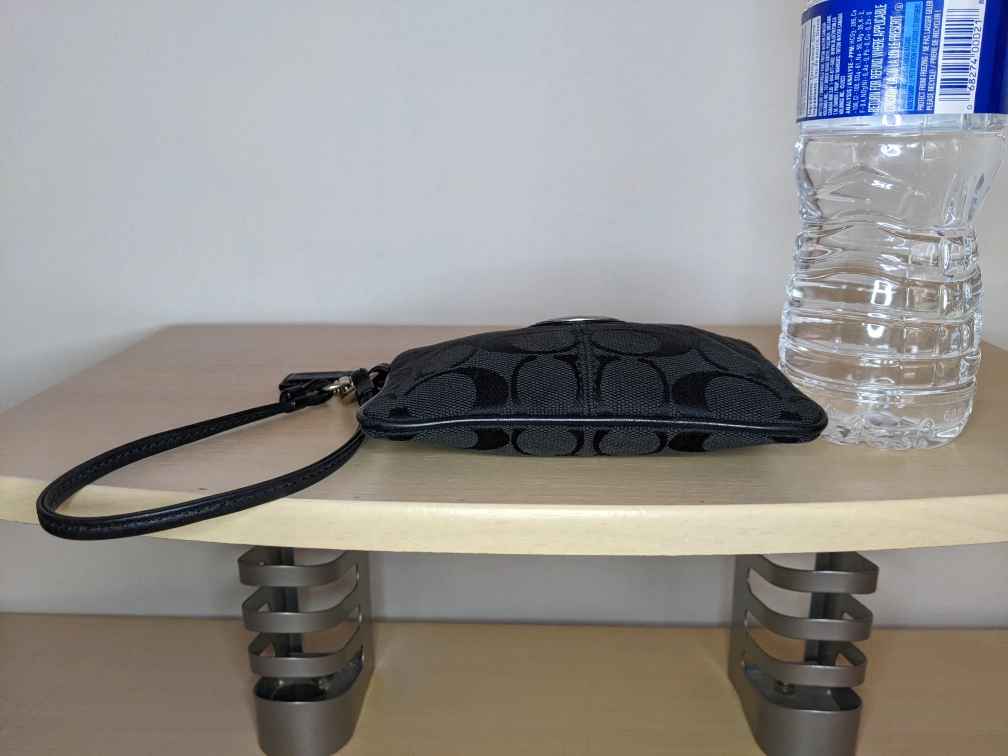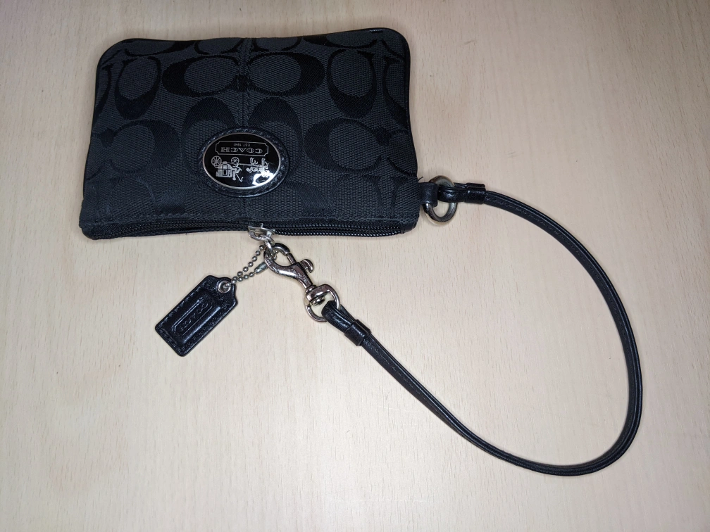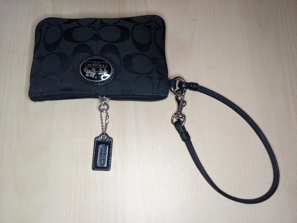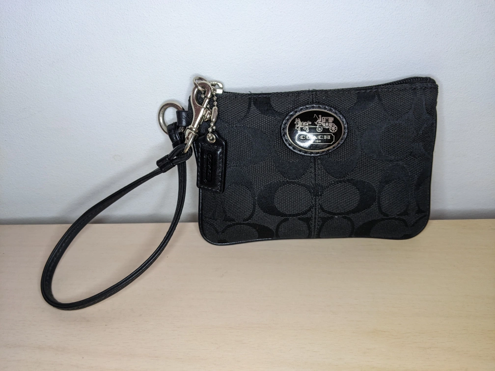 Coach Sutton Signature Wristlet Jacquard Zippered Pouch Leather Black