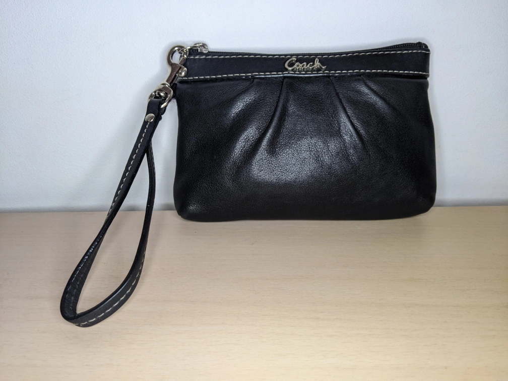 Coach Smooth Leather Pleated Pouch Wristlet Wallet Black