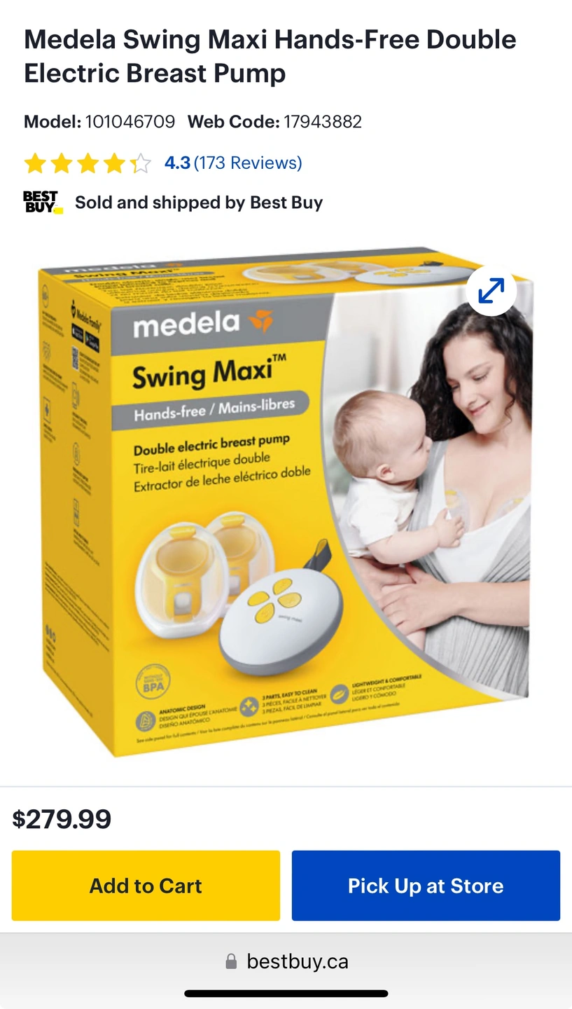 Medela Swing Maxi Hands-Free Double Electric Breast Pump.
