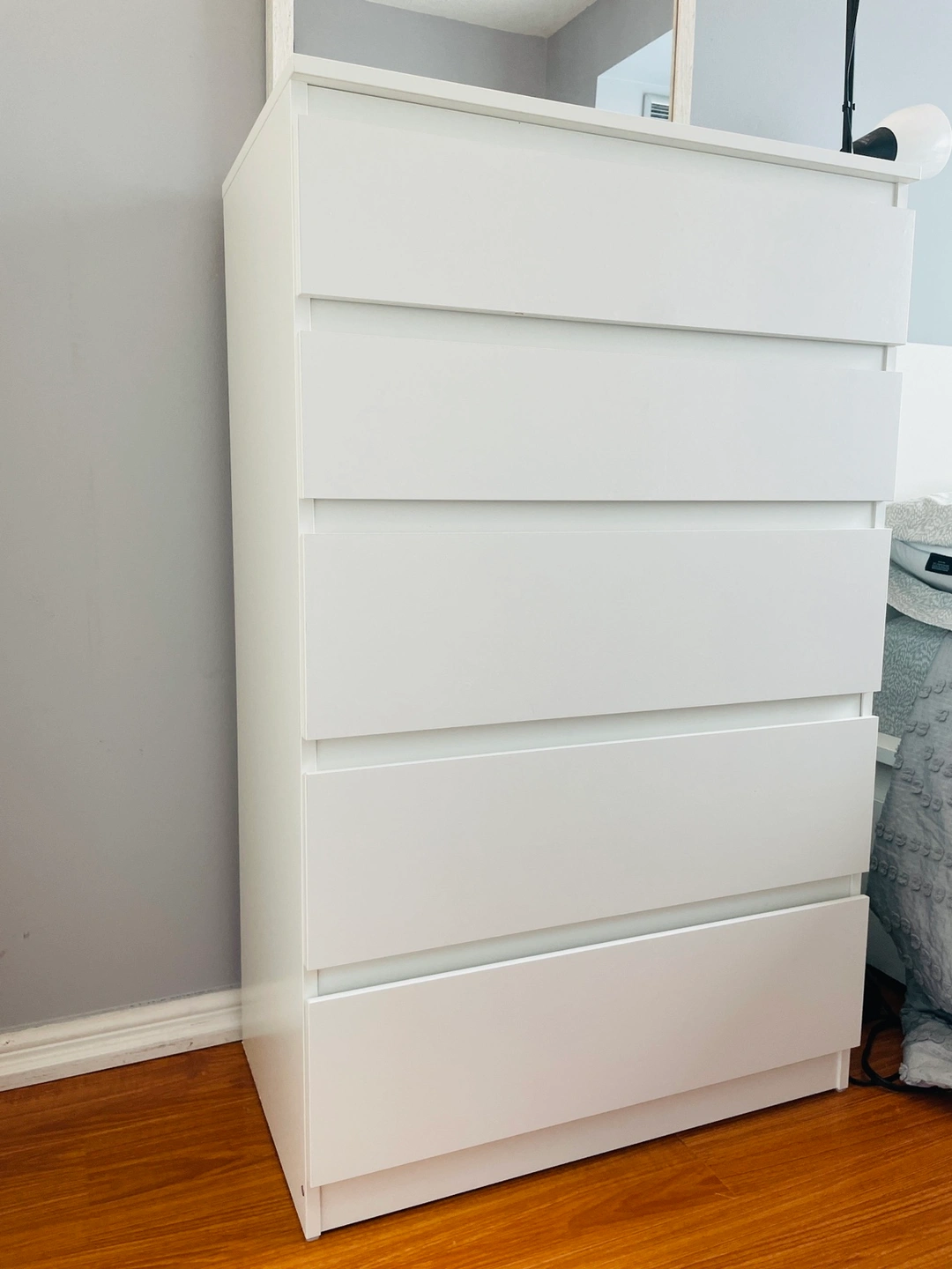 Barely used 5 drawer chest with plenty of storage space. It is in perfect condition with no scratches or stains. This was used in the guest bedroom so was barely used.