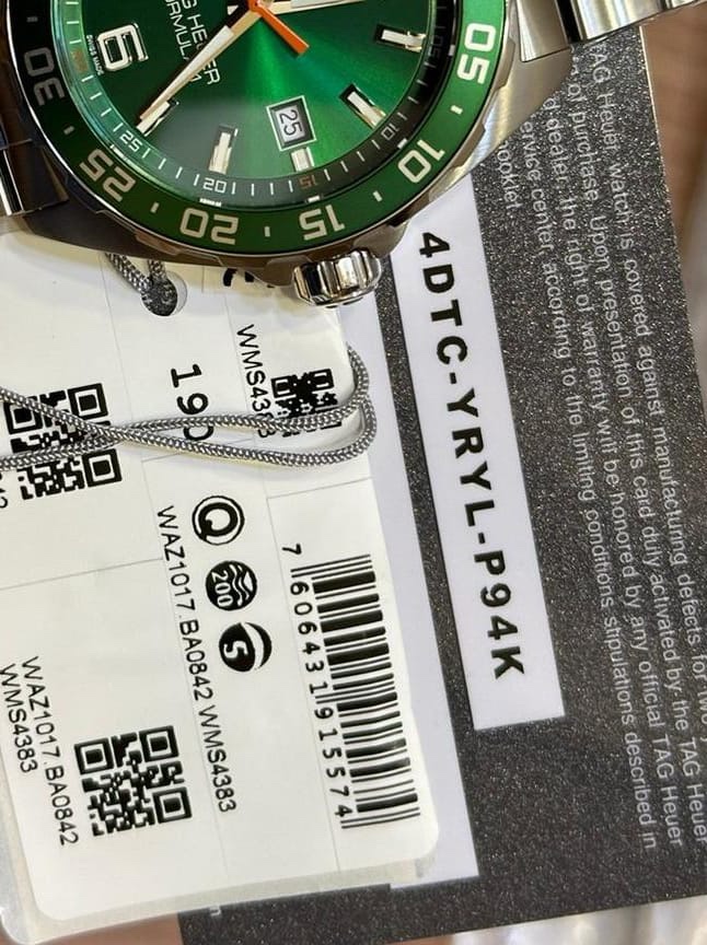 40Tag heuer formula 1 Ref : WAZ1017BA0842 Green dial Quartz movement Prestine condition Box card all things included Warrenty ended in july 2024 Brand new condition Demand 1200 Open to offers